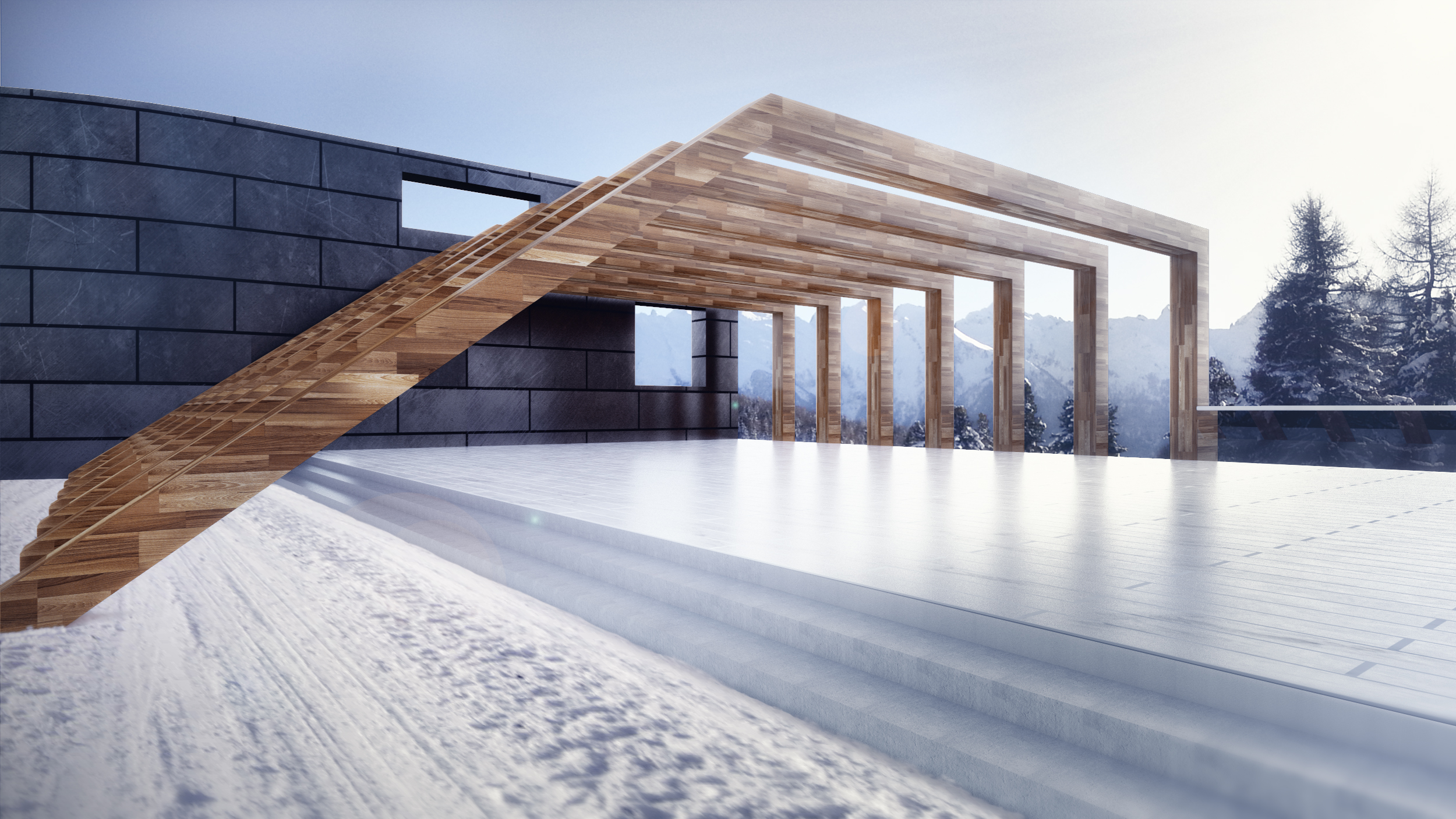 Rivedrei sicuramente la neve in primo piano. Troppo "sfocata" rispetto al render molto nitido a cui viene accostata.