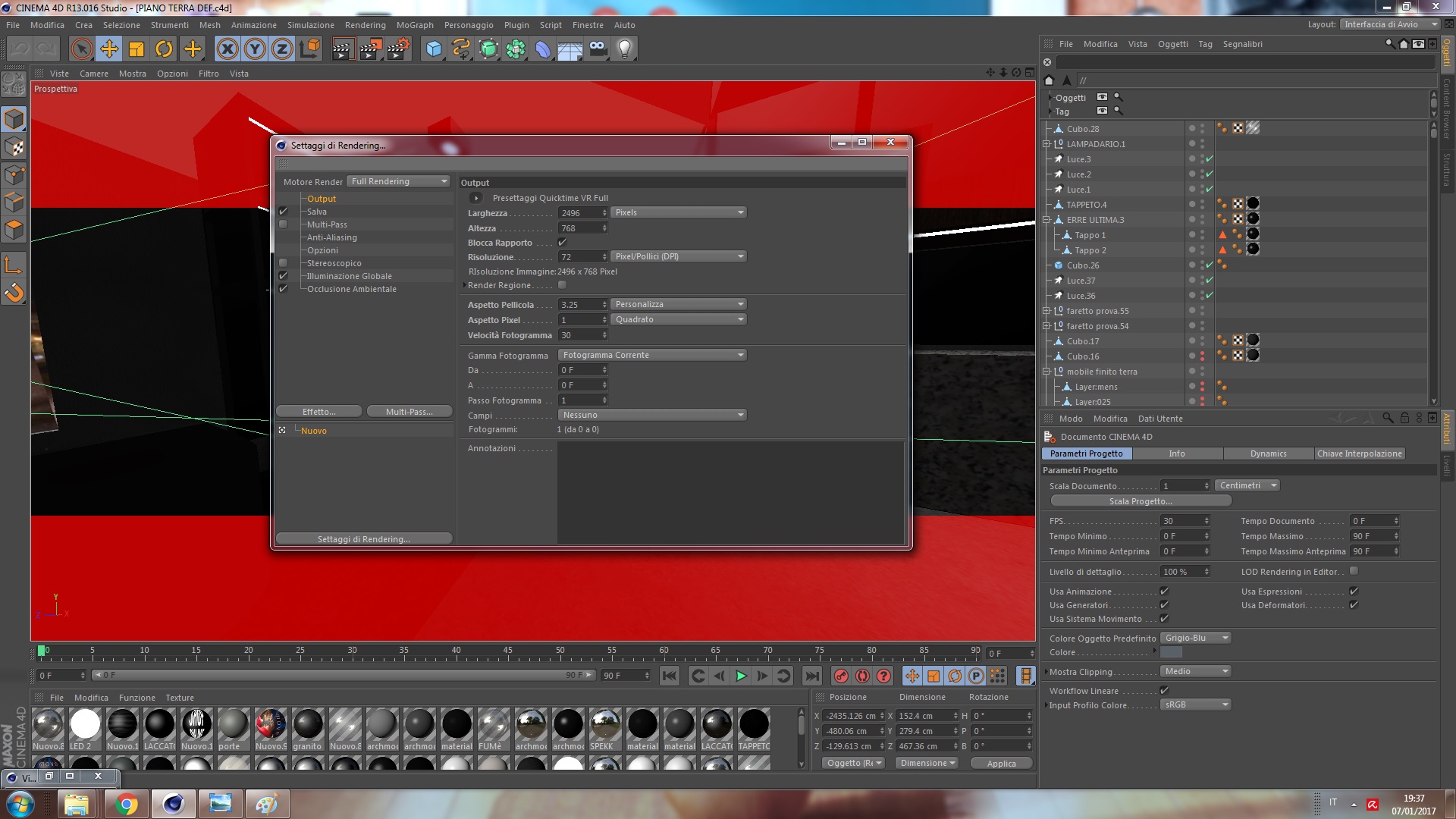 Nei parametri invece ho impostato prima Quicktime VR panorama - opzioni - tipo di compressione -video mpeg4, poi ho cambiato in photo-jpeg. Nel primo caso mi ha renderizzato un immagine completa ma con piccoli difetti quali linee verdi o pezzi mancanti tagliati, nel secondo caso invece l'immagine appare corrotta quindi la apro ma non me la visualizza nemmeno...