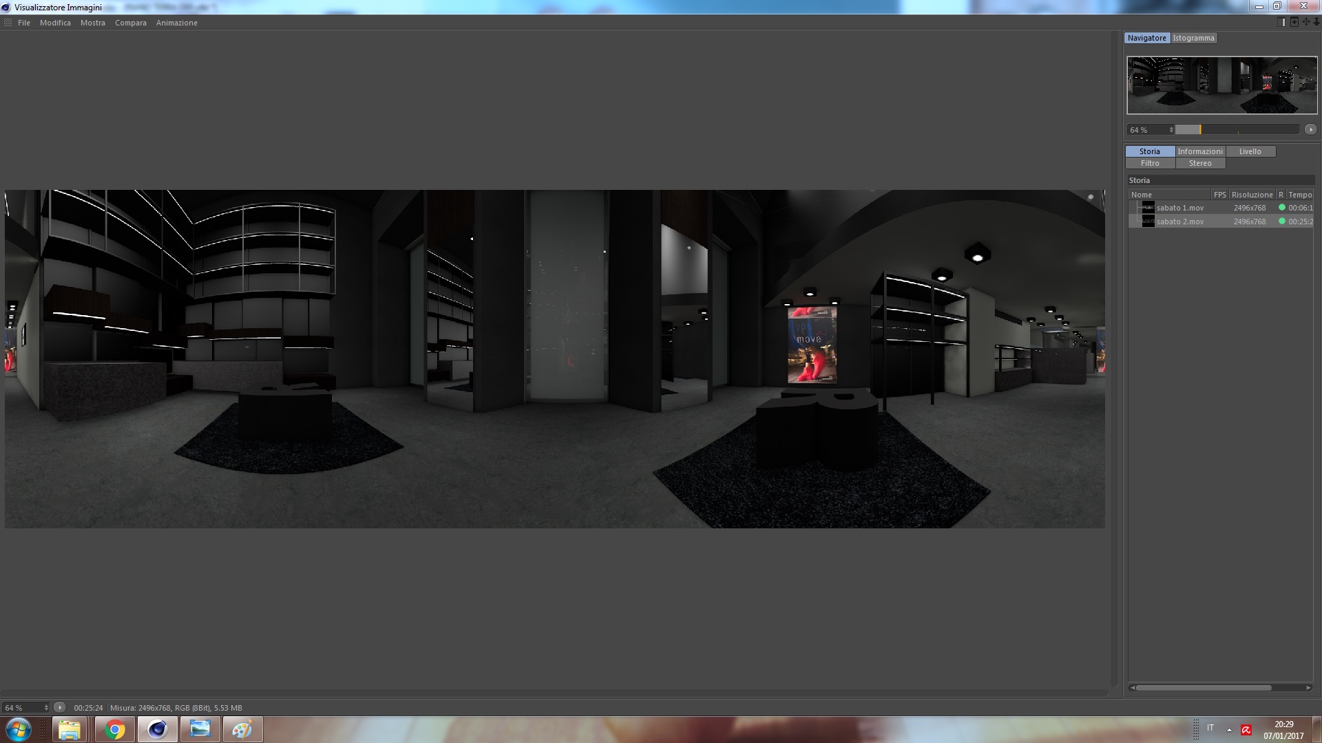 ho un problema nella realizzazione di un render Quicktime VR Panorama, ho impostato tutti i parametri correttamente difatti il render arriva a completarsi nella preview.(nella maggiorparte delle volte, a volte il pc crasha inspiegabilmente a metà)