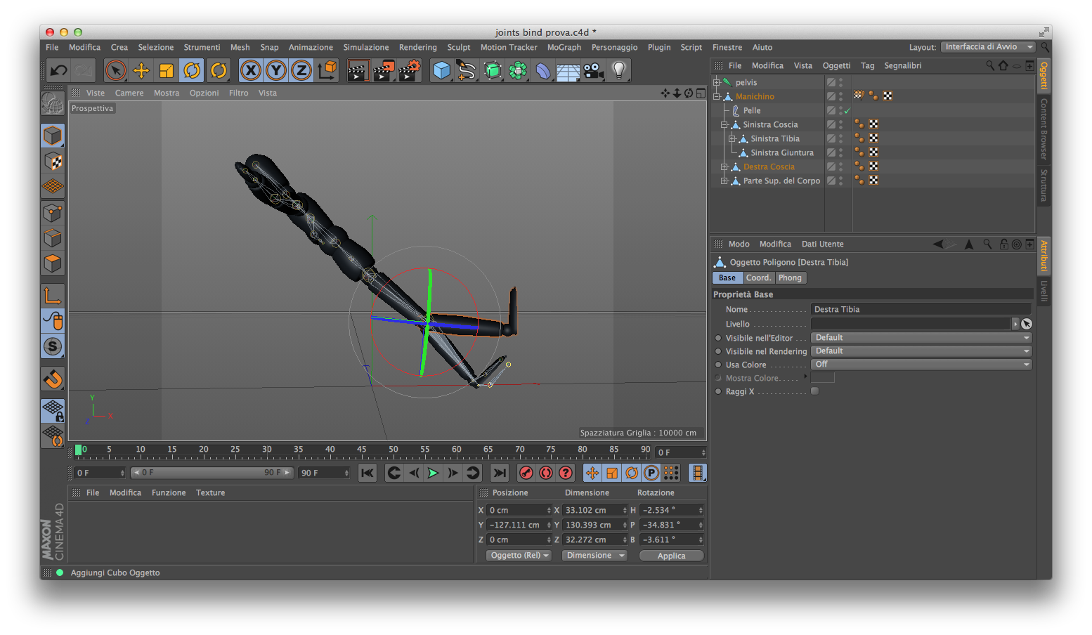 dalla foto puoi vedere: nella prima foto che ti appare il bind è stato effettuato, ho selezionato una gamba per verificare se joint e parte del corpo (ti richiedo intendi questo con mesh?) si muovono insieme come dovrebbero; nella seconda foto c'è la selezione del pelvis centro corpo subito dopo aver dato il comando binda-vincola; come viene spontaneo si muove lo strumento ruota (senza che io lo abbia selezionato, ti chiarisco il secondo punto) e tutto è "vincolato" come dovrebbe essere.