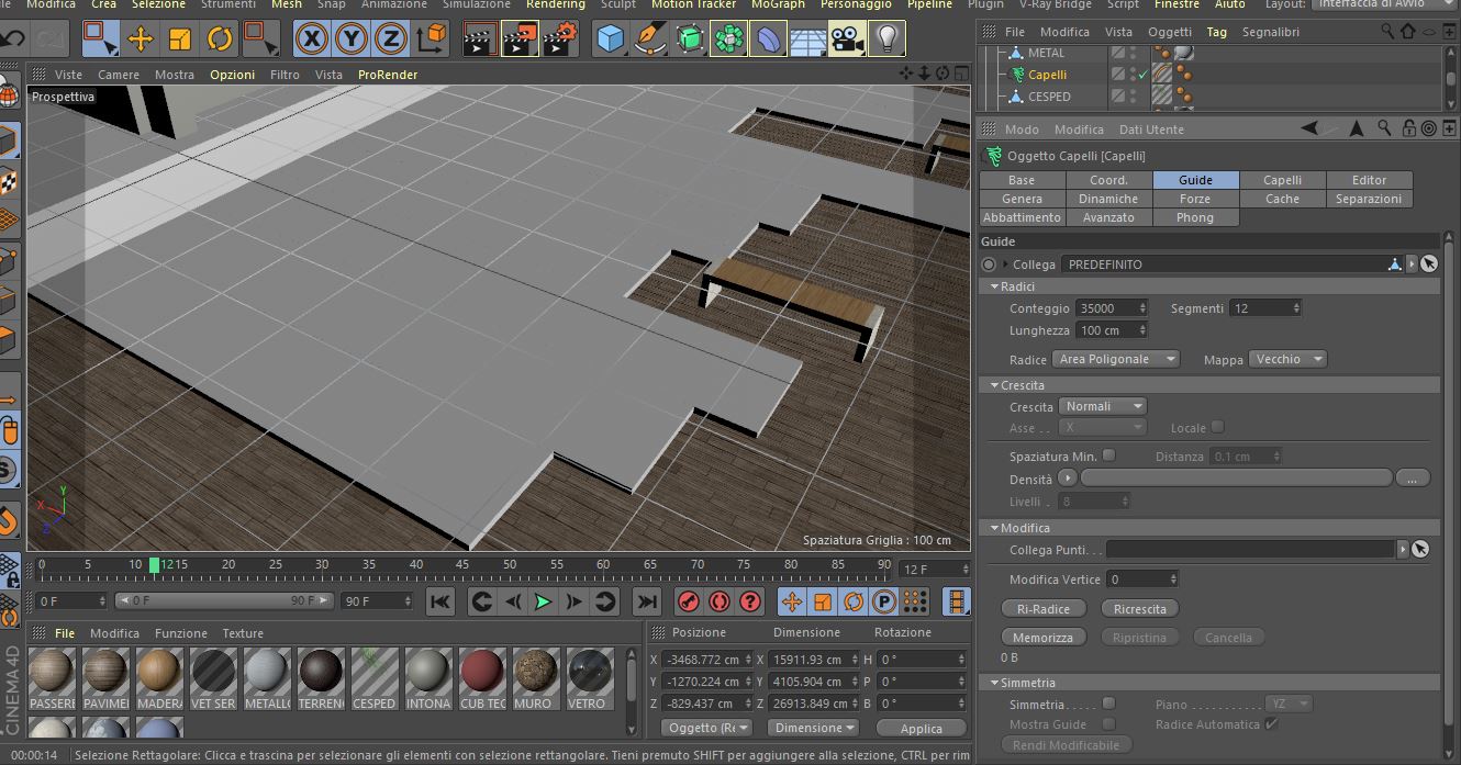 Allora, ho rifatto un po' meglio il tridimensionale su rhino per il prato. Ho dato anche piu' spessore stavolta. Pero' secondo me il problema di fondo e`che le mesh che esporto da rhino sono triangolari, mentre C4D accetta degli oggetti con poligoni molto regolari di rettangoli o quadrati insomma. Quando vado a mettere l'oggetto Hair sull'oggetto, questo mi compare sono lungo gli angoli anziche' su tutta la superficie. A questo punto mi chiedo se c'e' un modo per esportare diversamente da rhino per un formato che C4D accetta piu' facilmente per queste tipo di operazioni. Grazie per la pazienza :)