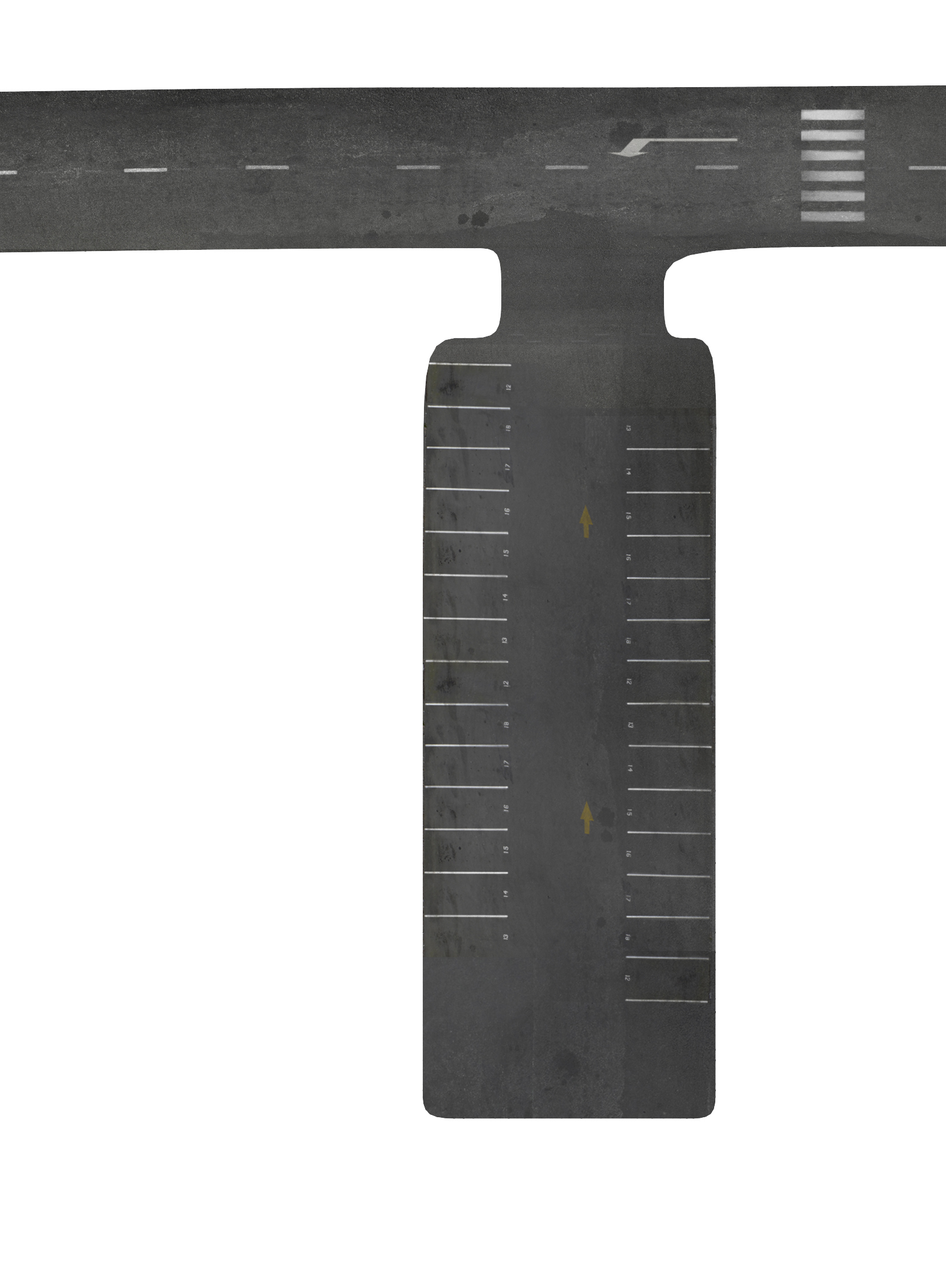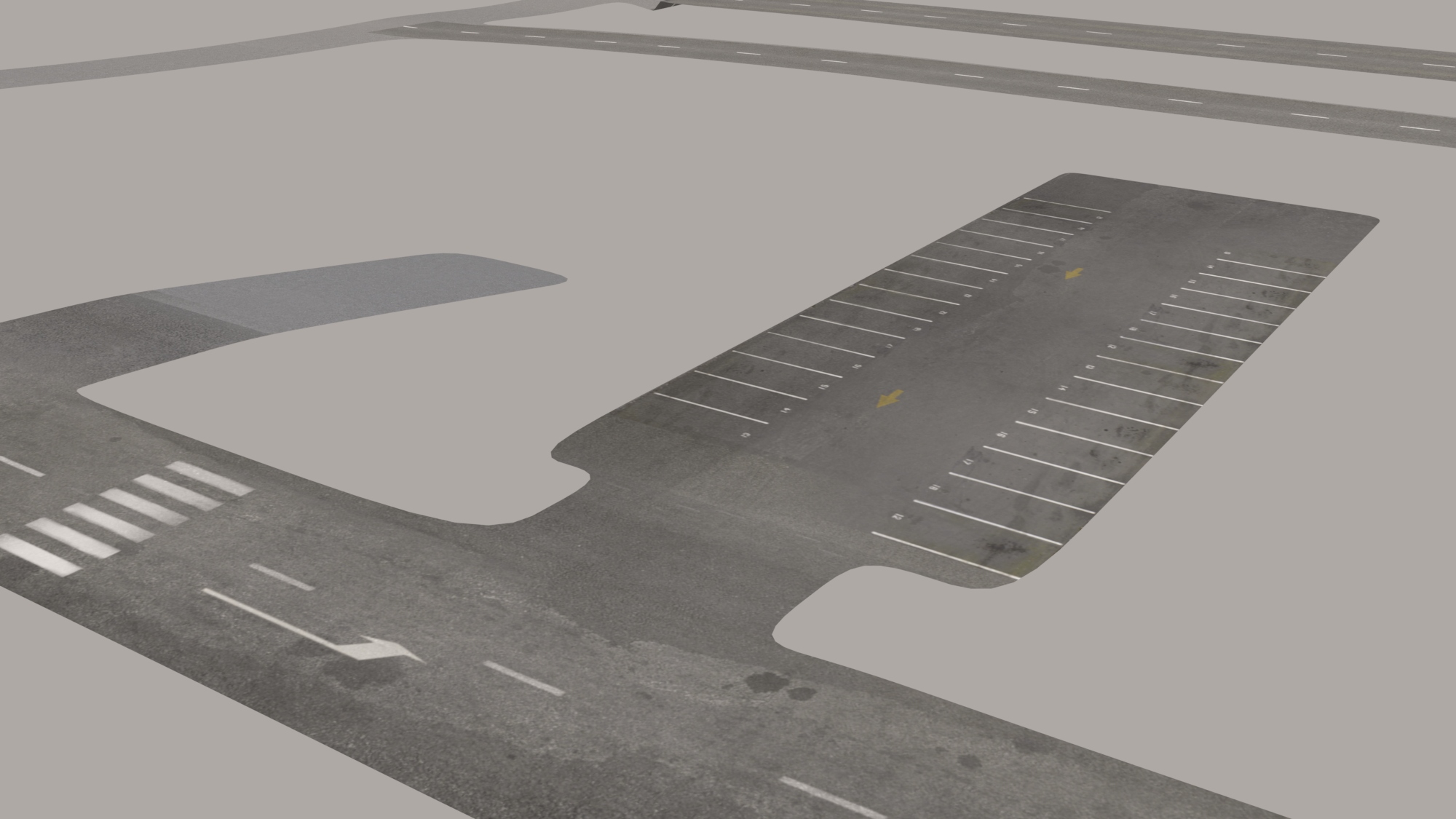 2) creare una texture ripetibile dell'asfalto per creare la base, deve essere fatta molto bene perché non deve mostrare l'effetto tiling altrimenti viene una schifezza, una volta che hai una texture di asfalto uniforme che copre tutto, quando sei a terra ovviamente vedrai bene perché' la risoluzione e' confinata in una zona e viene ripetuta N. volte.