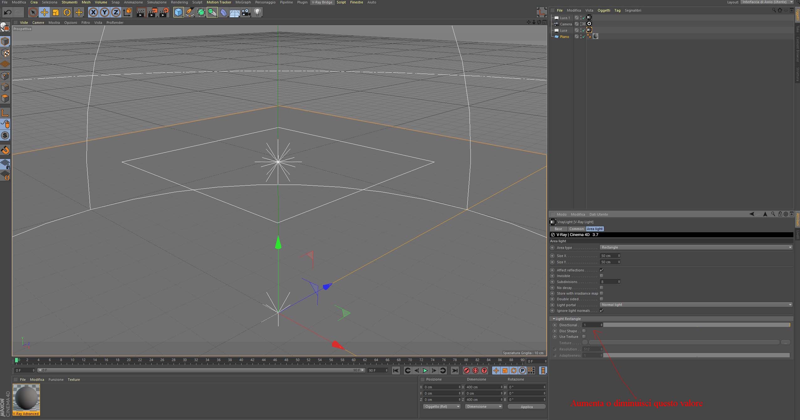 Ho creato un piano con mat. luminosity layer.