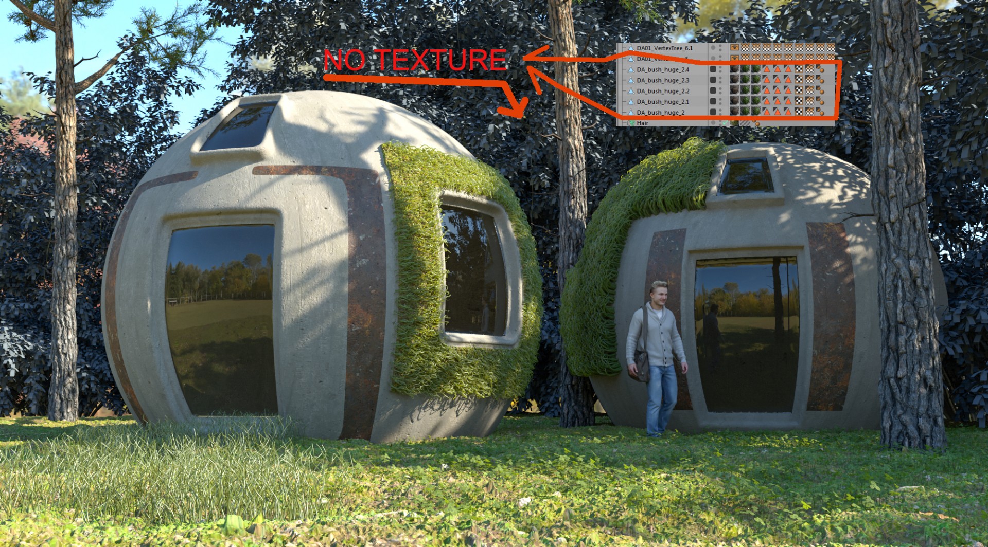 Buongiorno instancabili 3dpeople, mentre facevo una scenetta per testare delle verdure 3d mi è successo che una tipologia di arbusto di sfondo lanciando il render perdesse connotati texture, mentre lanciando il viewport rimanevano al loro posto.