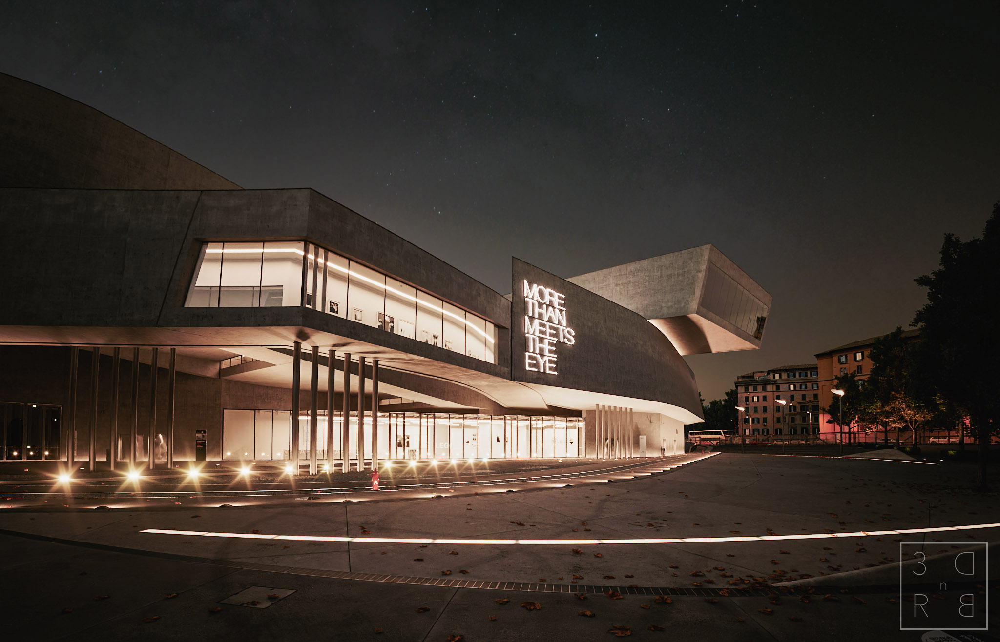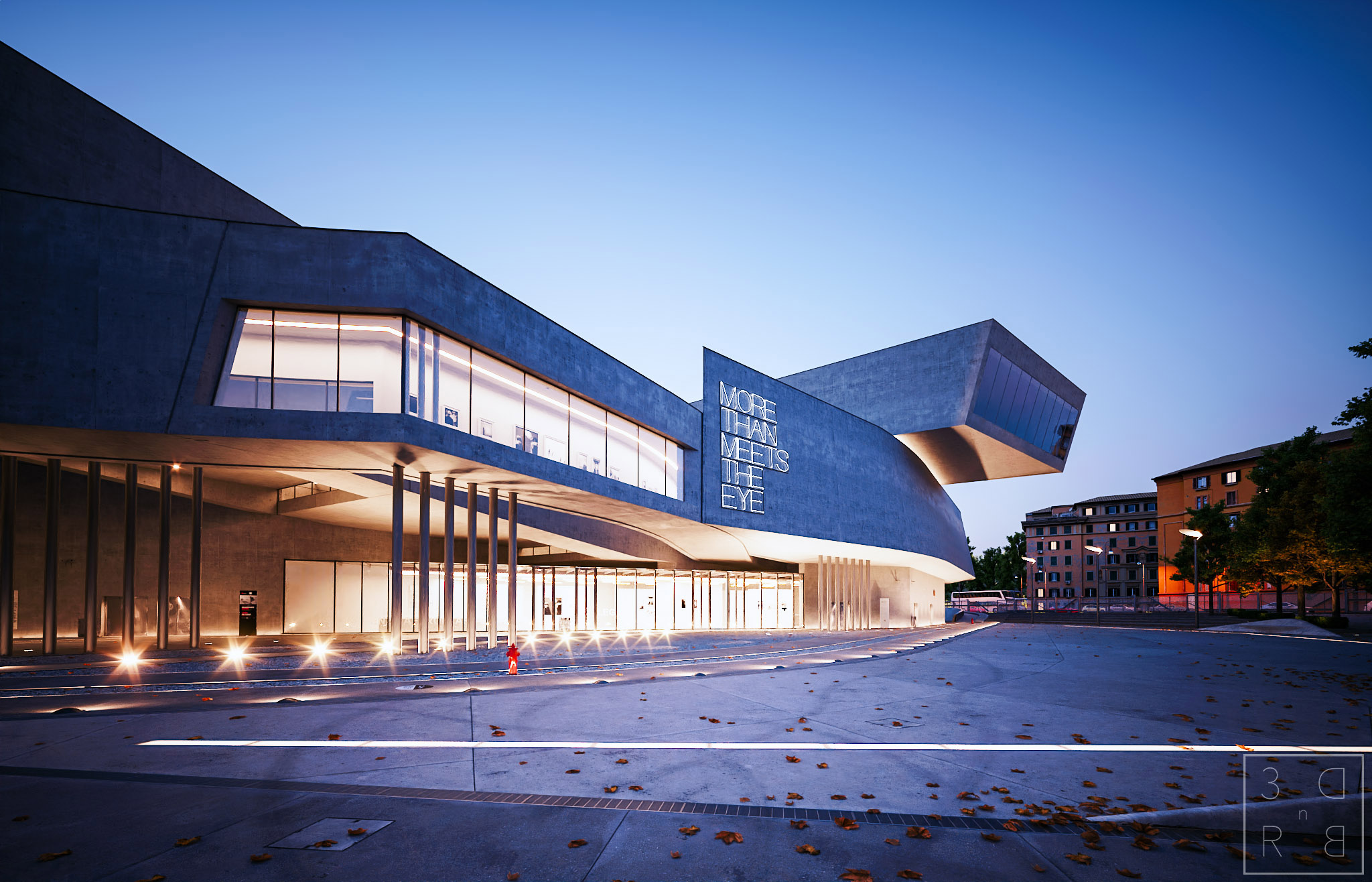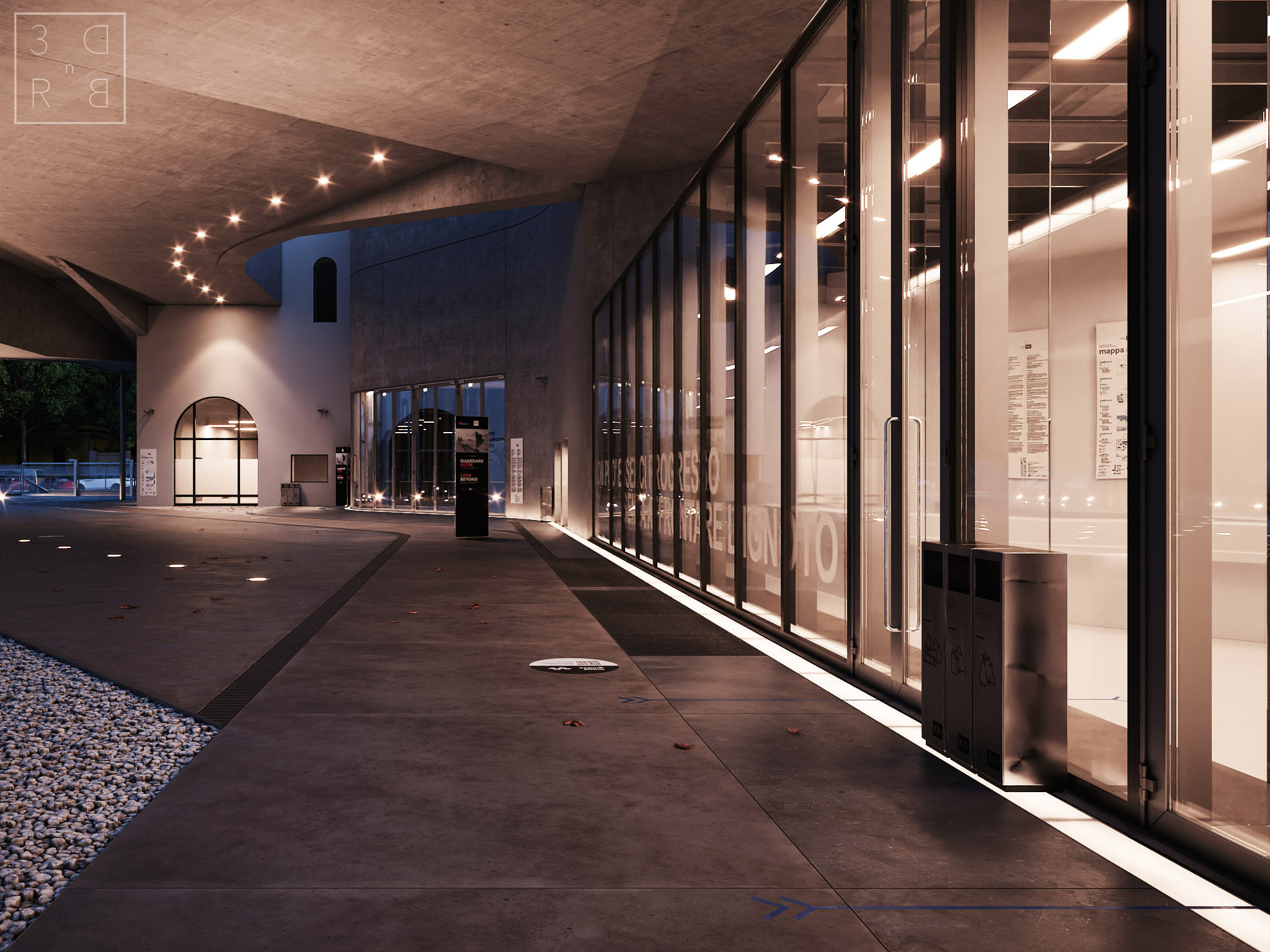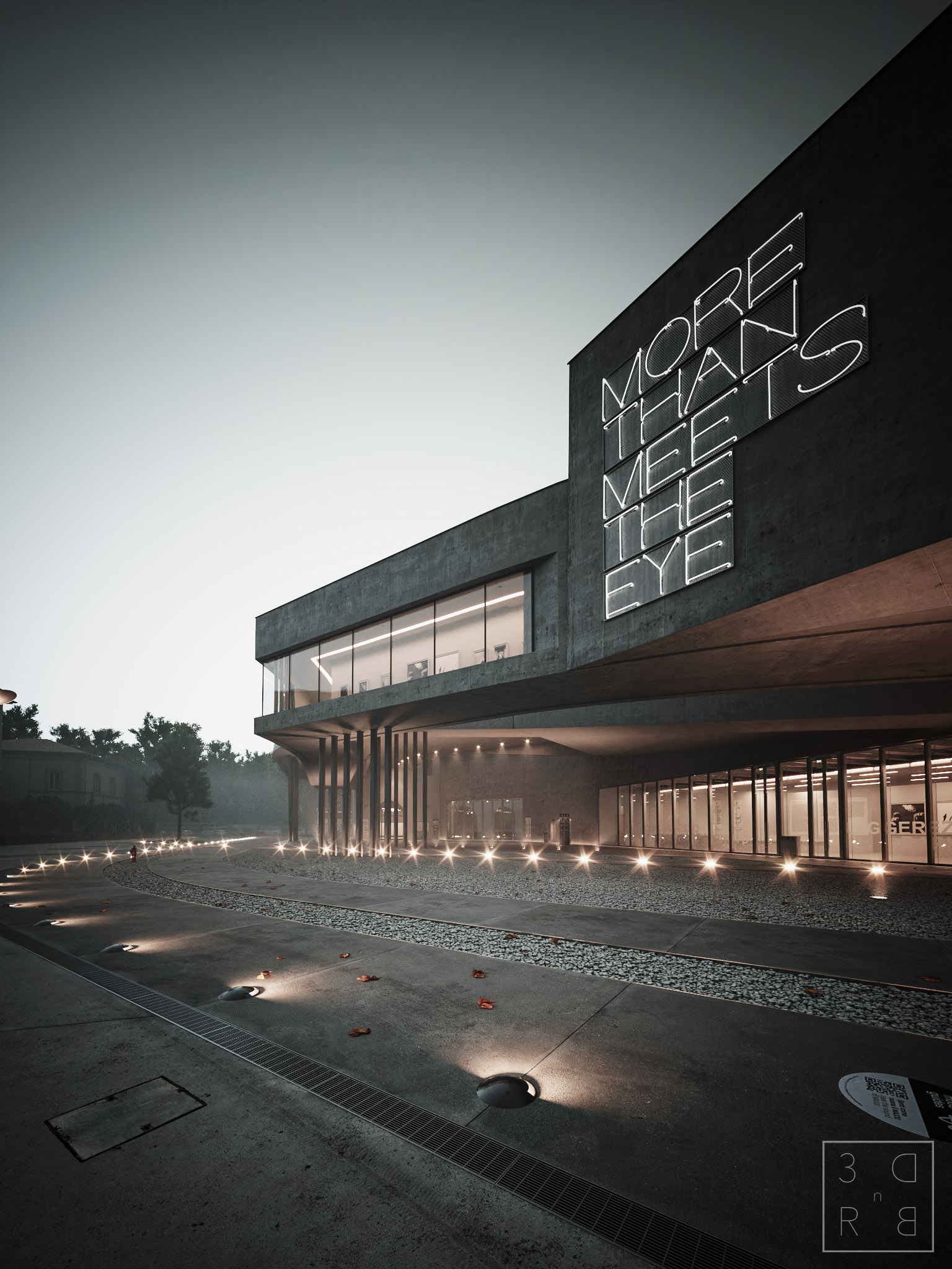 Un paio di viste con un mood blue hour, per l'immagine verso l'ingresso ho usato un'hdr mentre per la vista generale ho usato direttamente un physical sun: