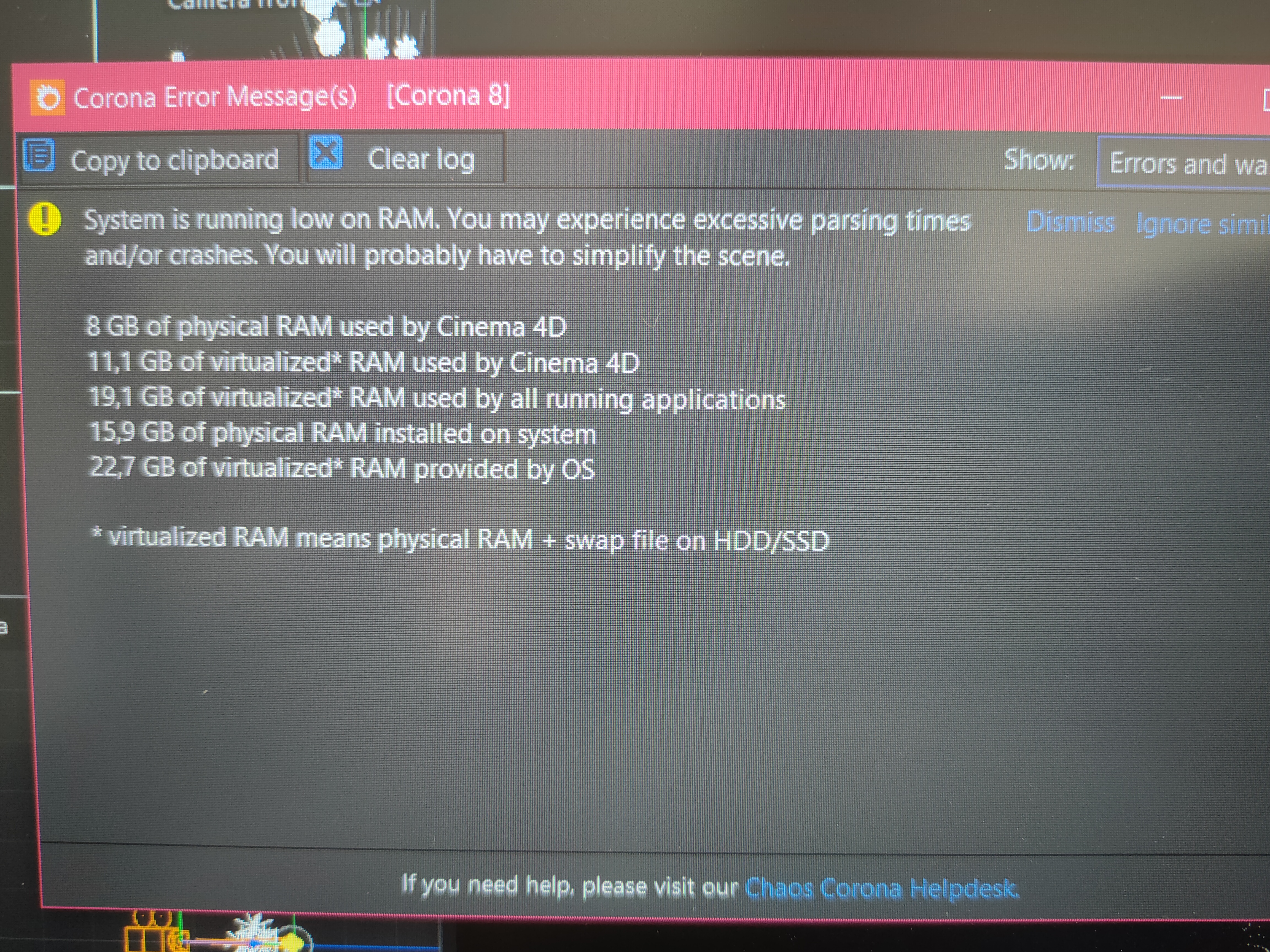 Salve a tutti, sto avendo problemi con il motore di render corona per C4D, ho inserito tutti i materiali, alcune luci e alcune camere di prova, quando avvio il render mi si blocca il programma quasi immediatamente, prima però mi escono 2 schermate che ascio in allegato. Qualcuno sa come posso risolvere la problematica? ne ho urgente bisogno per un esame universitario.
