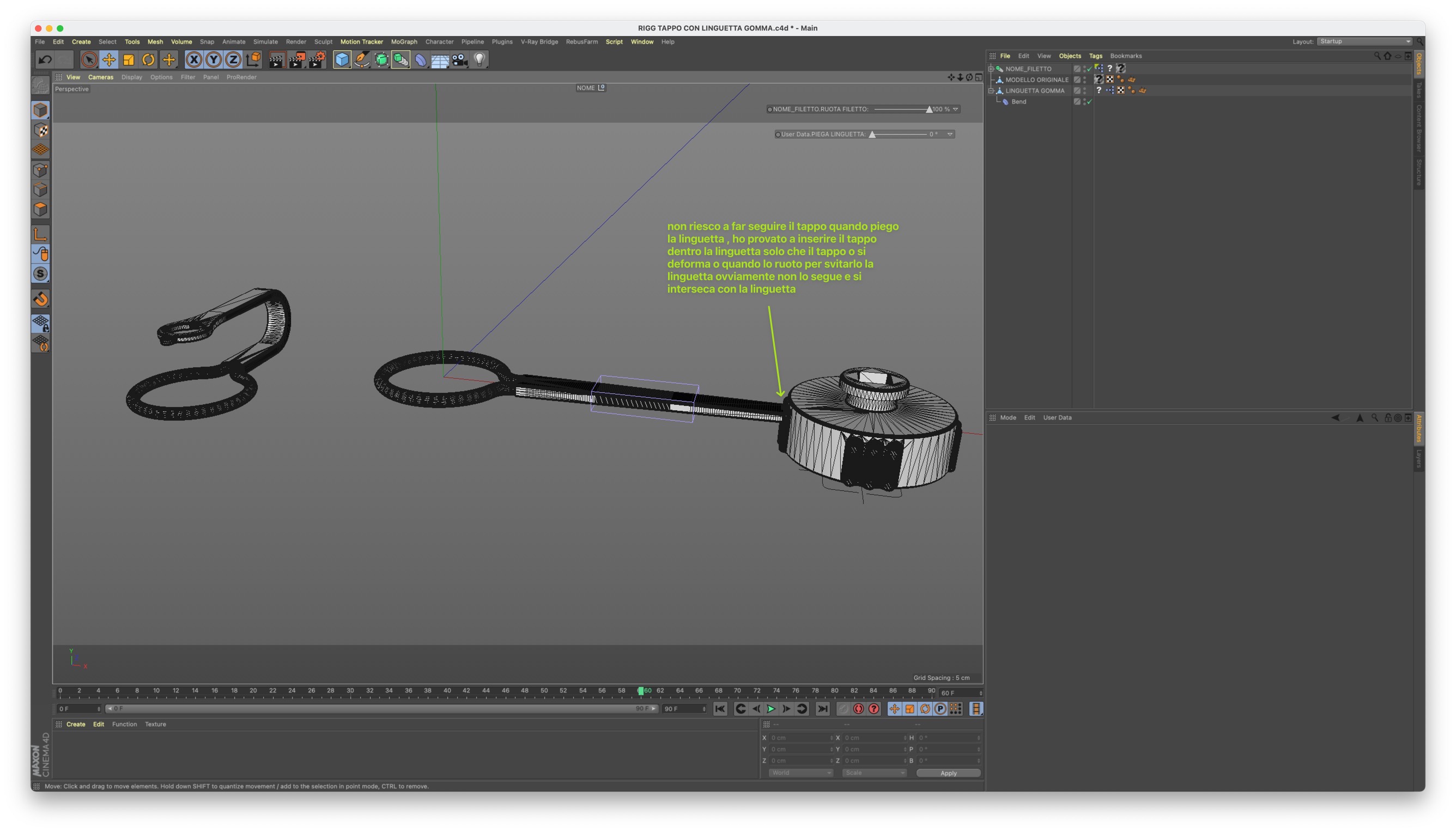 il tappo che si svita è ok a modo mio ho fatto un rig per ruotare e spostare il tappo in base al filetto, per la linguetta ho usato un Bend per piegare la parte centrale , l’unica parte che deve essere piegata , la linguetta è rigida quindi e sufficiente piegare la parte centrale