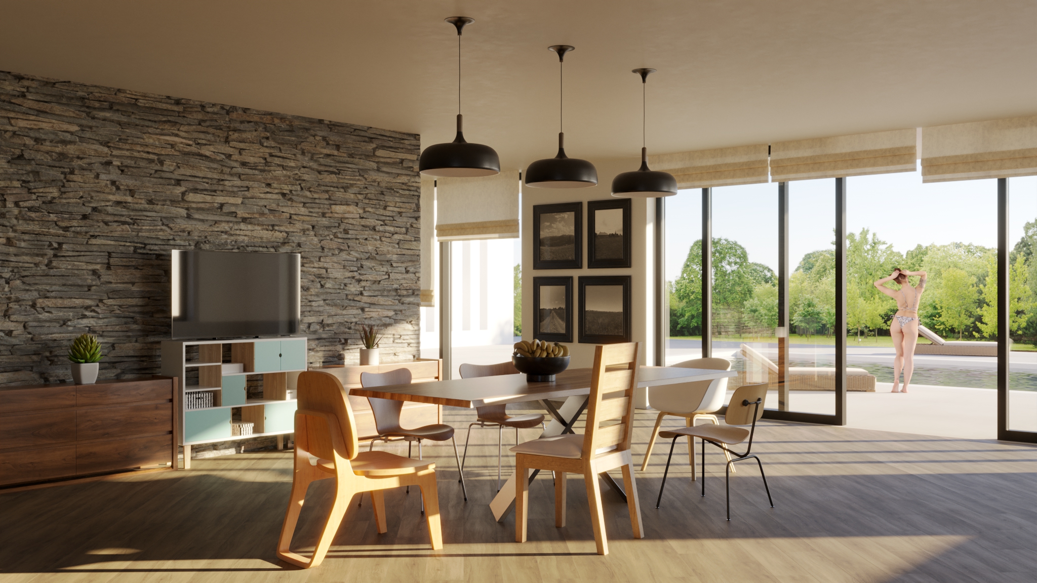 In pratica nella prima immagine, tutti quei piccoli cespugli e le rocce sono 3D (per la vegetazione intendo, poi ovviamente ci sono l'auto, il fabbricato e tutto il resto) ma l'albero e gli alberi che si riflettono nei vetri (come quelli che si vedono all'esterno dalla vista interna) sono piani alpha!