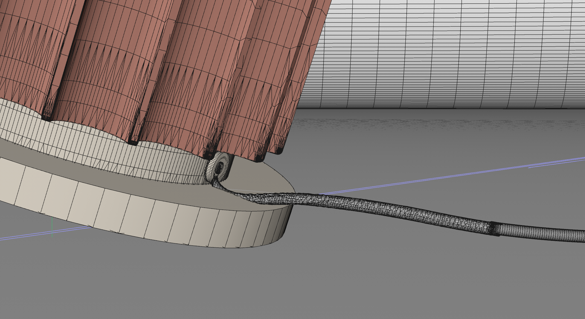 il cavo mi si interseca con la base della lampada nel movimento e crea artefatti con i poligoni. Il cavo non segue un movimento fluido, bensi, si modifica ma rimane statico praticamente.. i due esempi dei problemi li allego nelle ultime immagini.