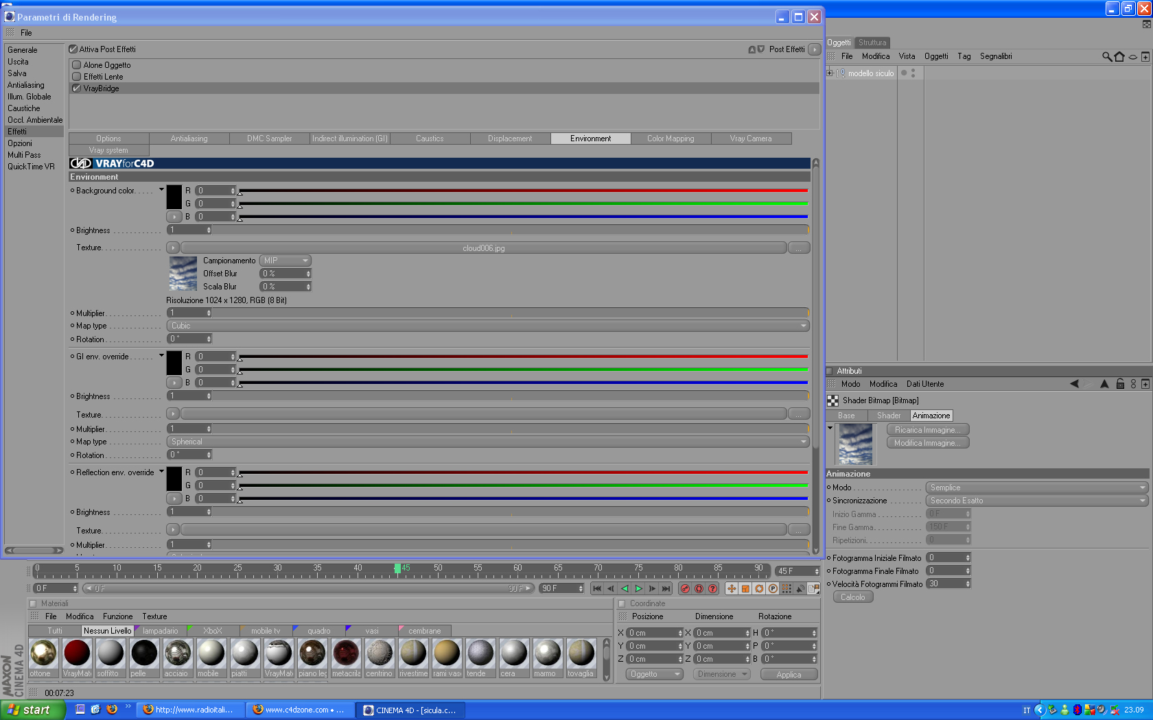 in questo caso, quali parametri bisogna assegnare alla texture cielo? Nell'esempio allegato ho impostato il tipo di proiezione "frontale" giocando poi su "ripeti X" e "ripeti Y"