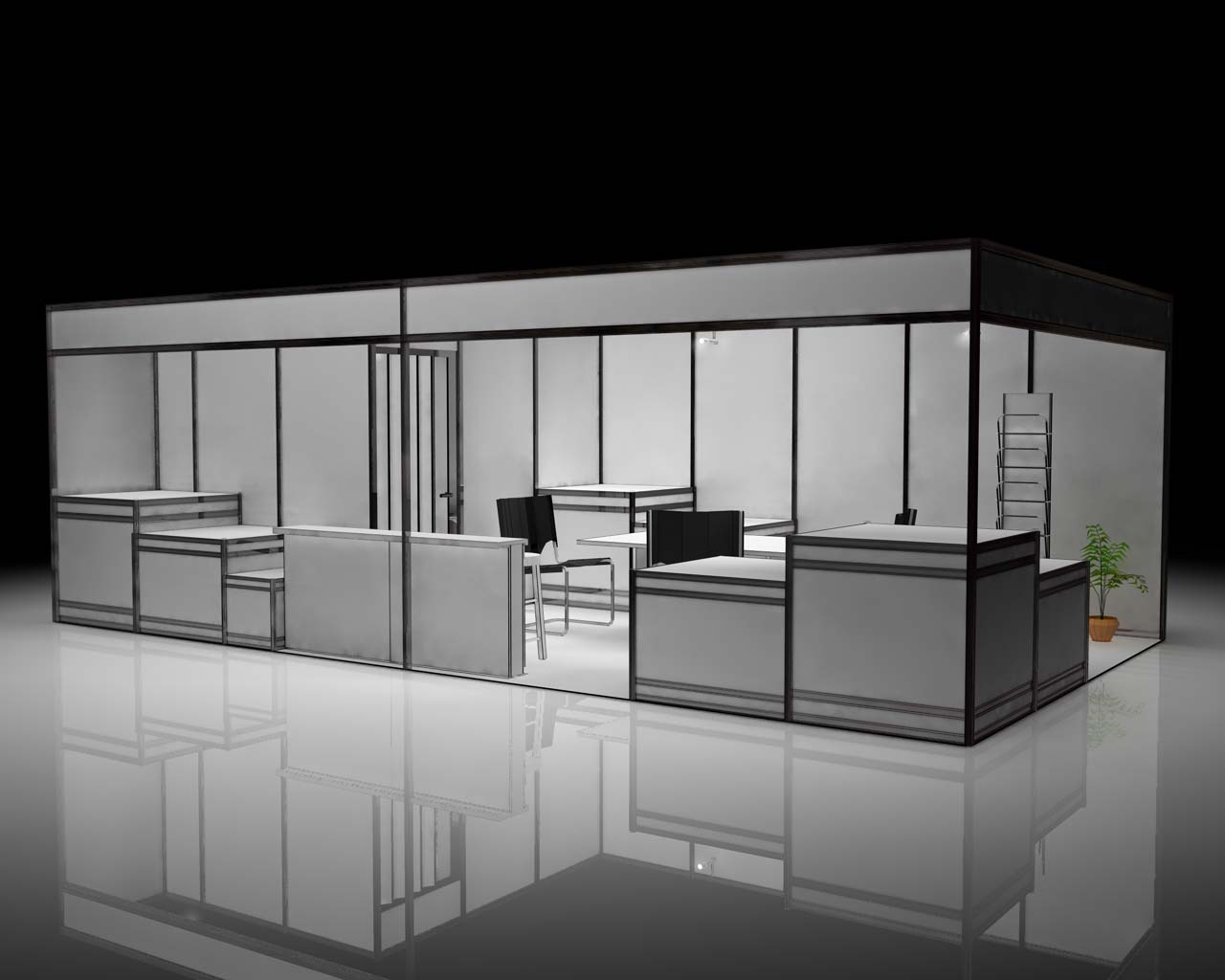secondo me dovresti aumentare la luce anche sul lato corto dello stand, è probabile che sul fascione vada messa della grafica.