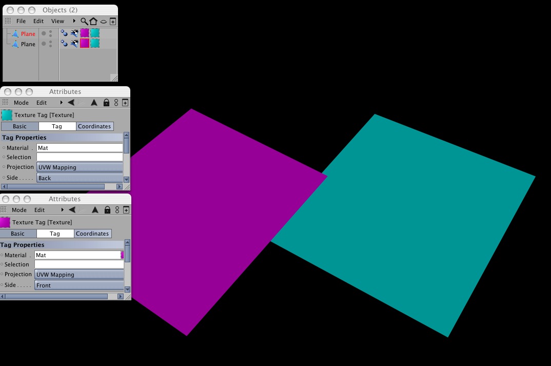 Ho provato ad assegnare le due texture in proiezione piana solo fronte e una solo retro, ma non funziona.