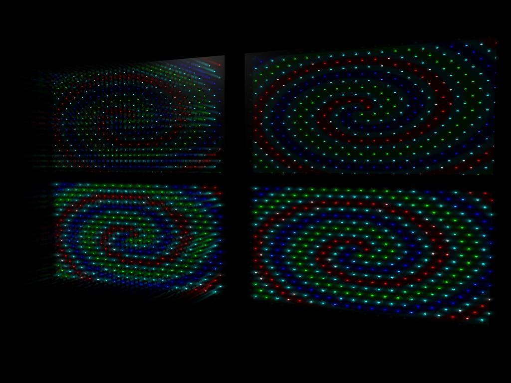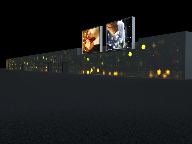 Sto modellando alcune scene in cui il soggetto principale è il LED (light emitting diode), e fin qui nessun problema, costruisco dei piccoli cubi a cui assegno un materiale con la texture che voglio visualizzare nel canale luminanza, magari un po' di glow e il gioco (fin che i led sono ad una distanza molto piccola tra loro) è fatto, il problema arriva quando i LED diventano 3000 e sono disposti a circa 40 cm l'uno dall'altro per rivestire la facciata di un tetro capannone.. e la mia necessità è che tutti assieme vadano a definire un unica immagine, proprio come un vero display .. la mia soluzione è di connetterli tutti in un unico oggetto e a questo applicare il materiale con l'immagine che voglio visualizzare.