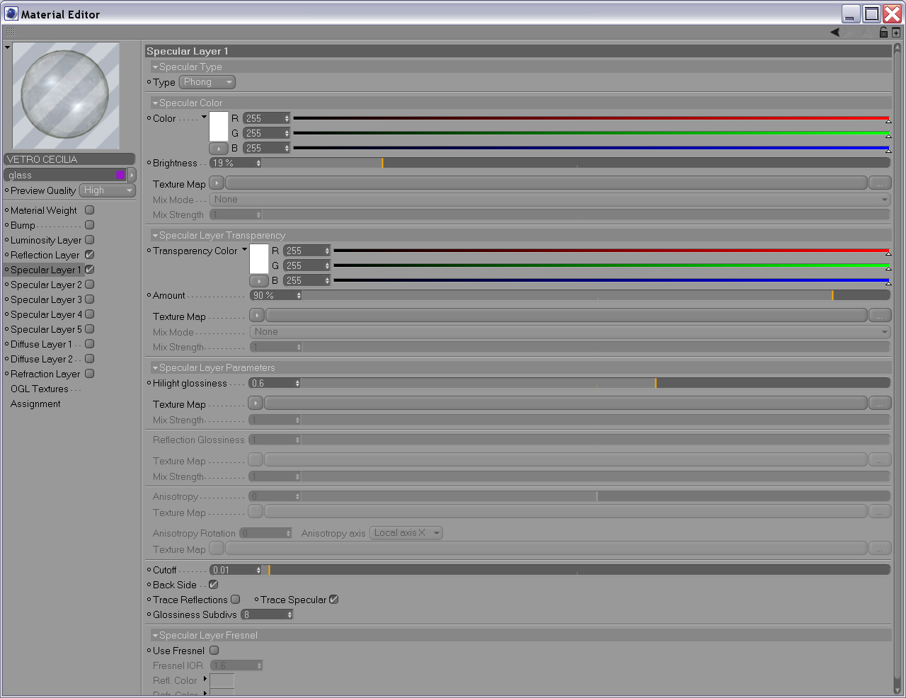 con un po' di tentativi sono riuscita a settare un buon materiale vetro..