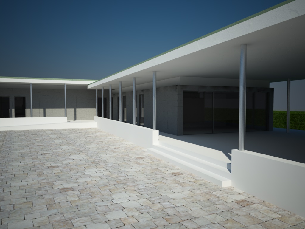 luci: vray sun + physical camera + 2 luci area x schiarire sotto il piano di copertura davanti la grande vetrata.