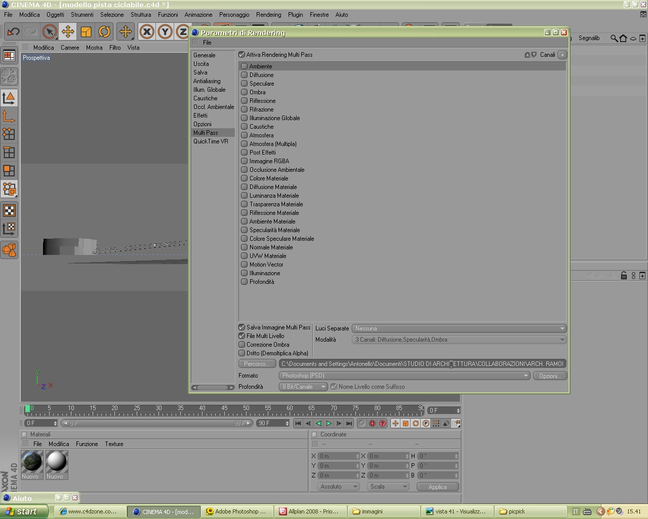devo renderizzare una pista ciclabile ed inserirla in postproduzione in photoshop per fare tutti gli accorgimenti necessari