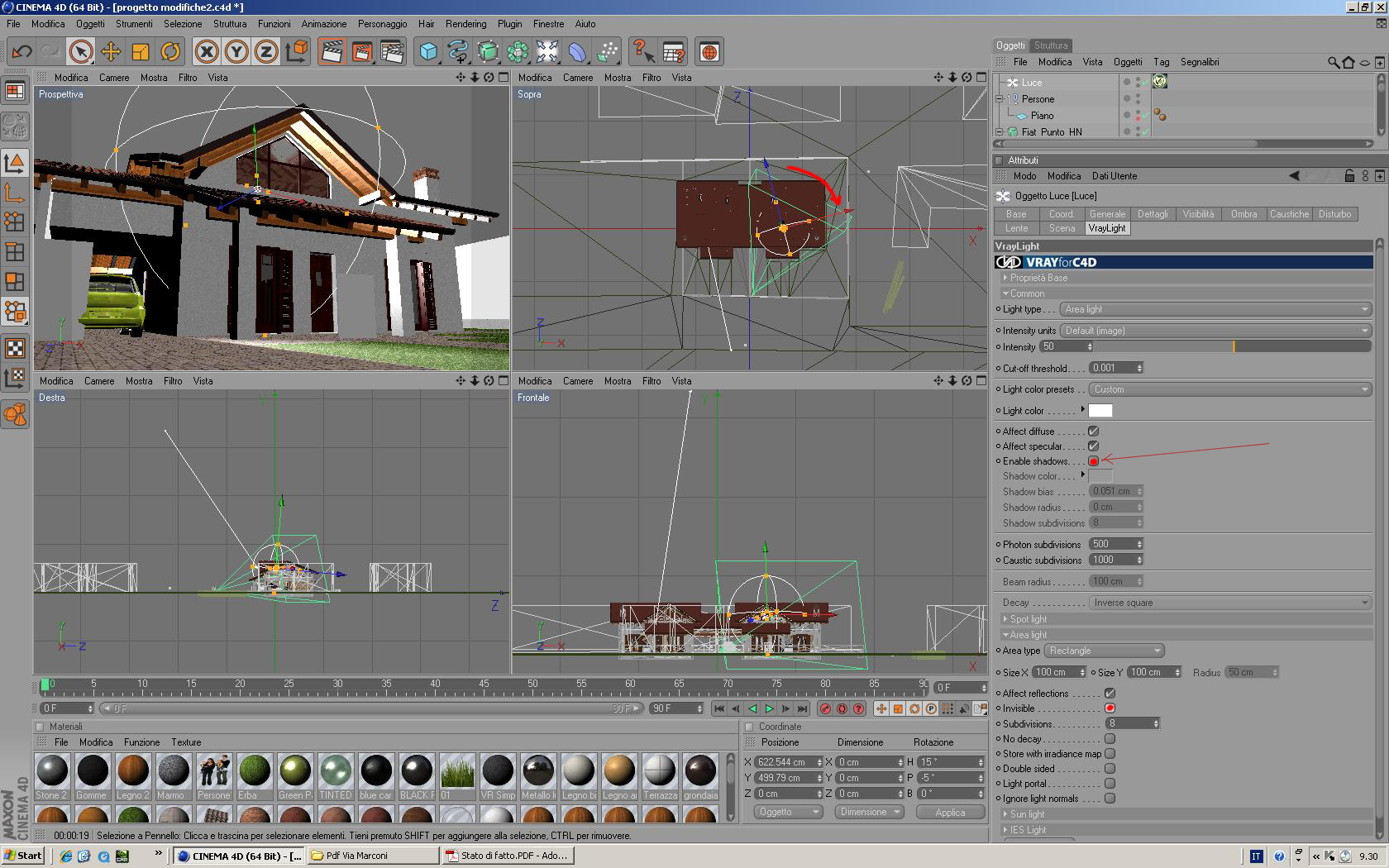 allora vedo che comunque la luce area è priva di ombre,spunta enable shadow e luce visibile,perchè ti crea una pannello nero e non riesci a vedere l'interno-Prova a girare la luce come ti ho segnalato con la freccia-Se rimane ancora nero ricontrolla i vetri,al limite per vedere se è il materiale vetro,prova a spegnerlo e fare prova.Ma secondo me è perchè tu devi spuntare luce invisibile,mi raccomando le ombre