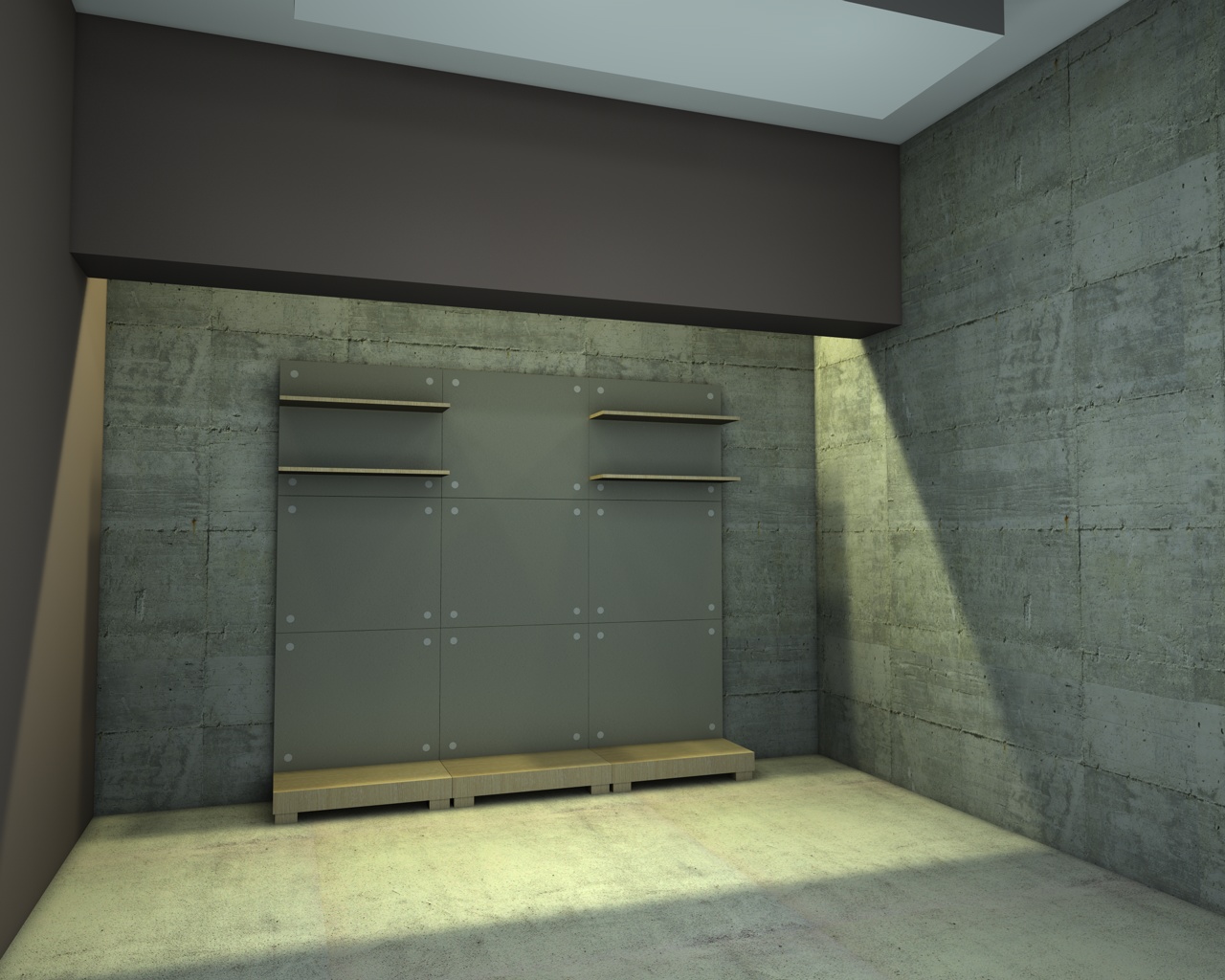 sul fondo un taglio nella copertura proietta l'illuminazione, mentre un setto ha la funzione di contenerla