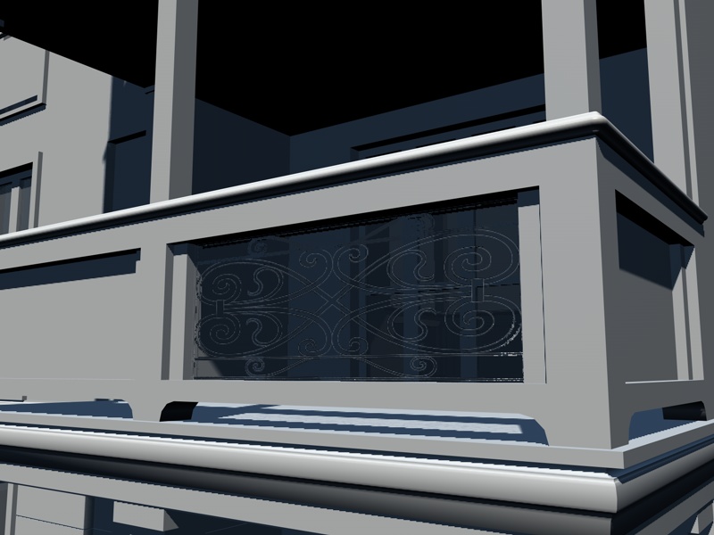 non devi mettere l'immagine della serigrafia nel canale alpha del materiale vetro, altrimenti ottieni il "ritaglio" del vetro con la sagoma della serigrafia... in sostanza il vetro ha assunto la forma della serigrafia, e il resto è vuoto.