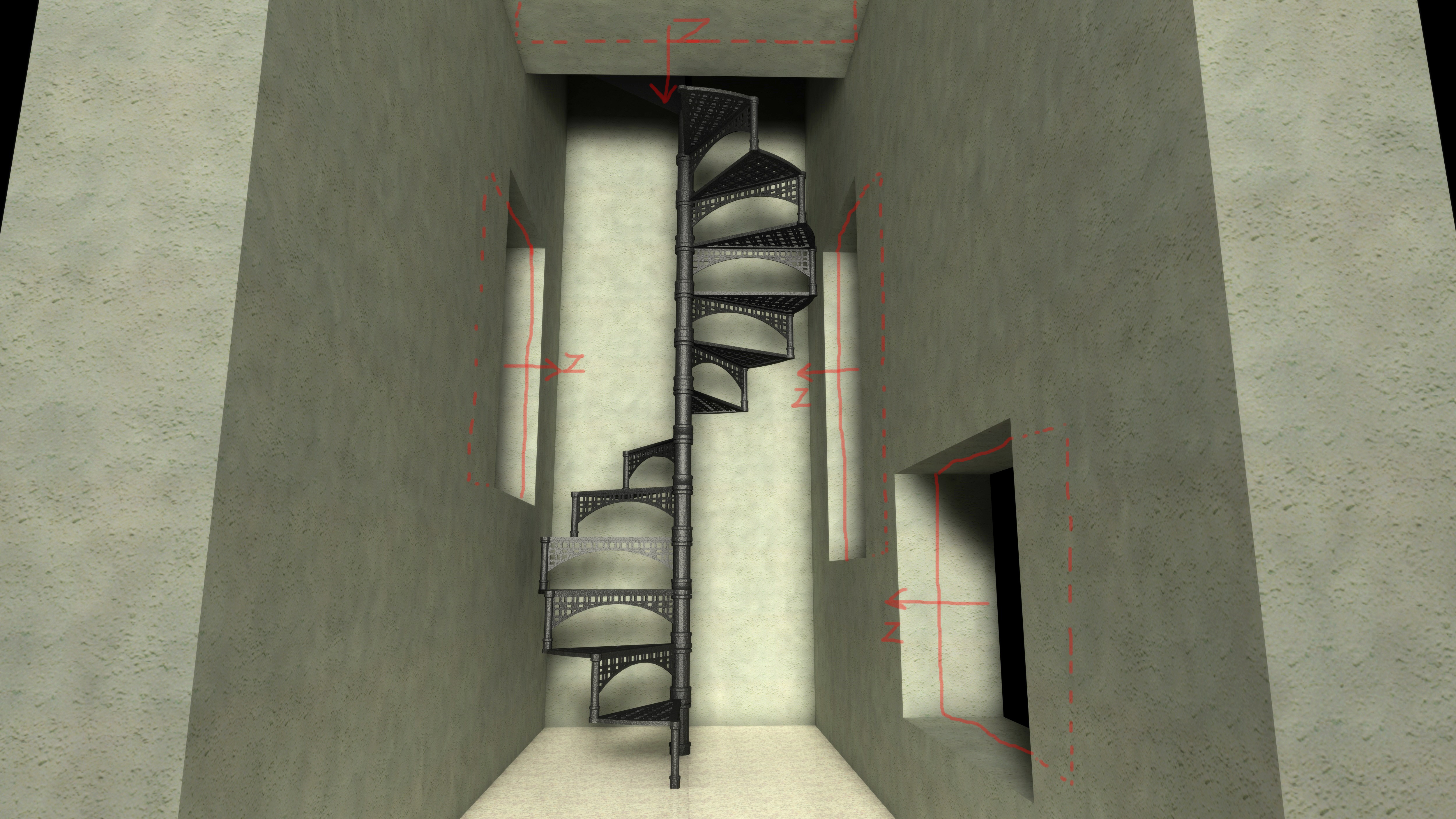 l'illuminazione secondo me andrebbe migliorata, ci sono troppe superfici bruciate e non si capisce da che parte entra, sembra che la scala arrivi direttamente su un terrazzo