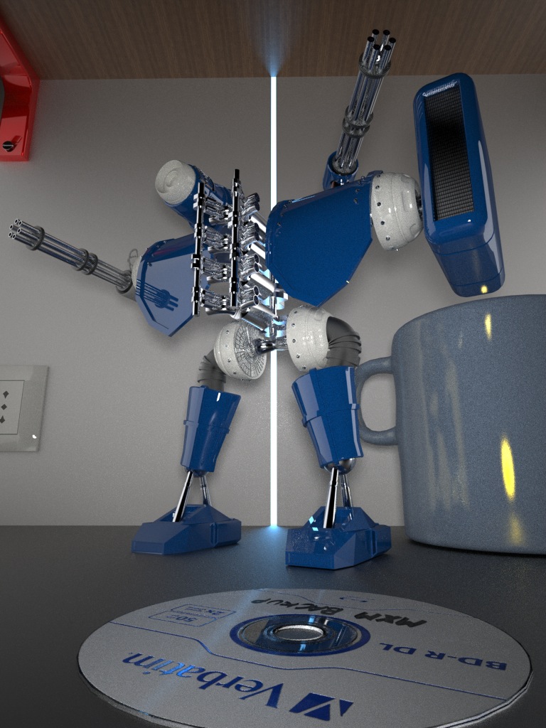 spero sia di vostro gradimento l'idea era di dare l'impressione di un giocattolo posizionato su una scrivania il fascio di luce sul fondo? è un giocattolo che vive un pò di vita proria nel suo piccolo mondo bha forse per la trama è meglio che chiedo appello al mitico matcsat, spero sia di vostro gradimento