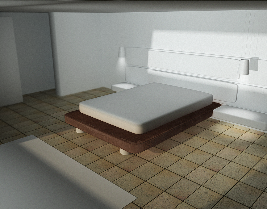 tutte le proporzioni mi sembrano nn giuste, idem per la modellazione di ciasun elemento...la base del letto in primis, ma è dentro un hiper??