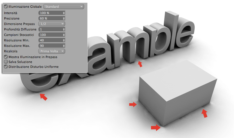 Non me ne capacito. Ho alterato diverse volte l'illuminazione globale ma ottengo sempre risultati simili. Altre impostazioni di rendering non ce ne sono se non l'occlusione ambientale con grigio scuro al posto del nero e antialiasing migliore. Che sara'?