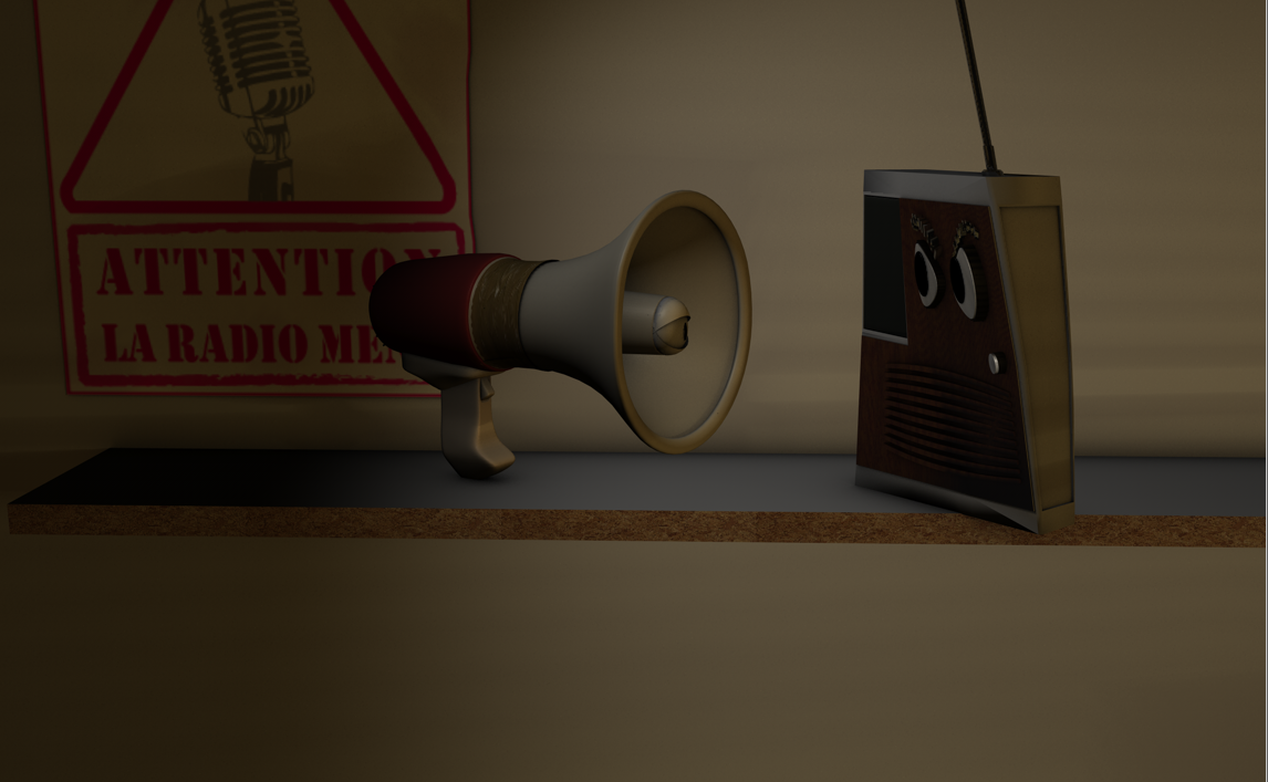Mi sono avventurata in un'opera titanica: animare due oggetti, una radio ed un megafono, per farli litigare. Ho usato più deformatori per ciascun oggetto (bend, twist, bulge e squash&strech).
