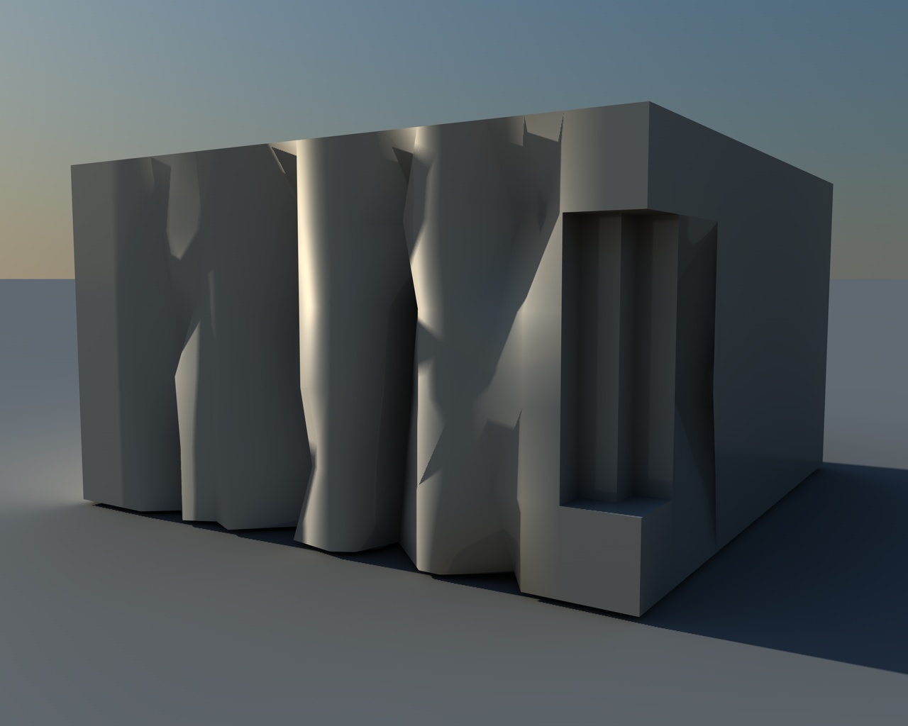 - il primo cubo è solo suddiviso "regolarmente", ho fatto una selezione dei punti bassi e con lo strumento "setta valore punto" li ho "stropicciati", in seguito ho smussato tutti i bordi