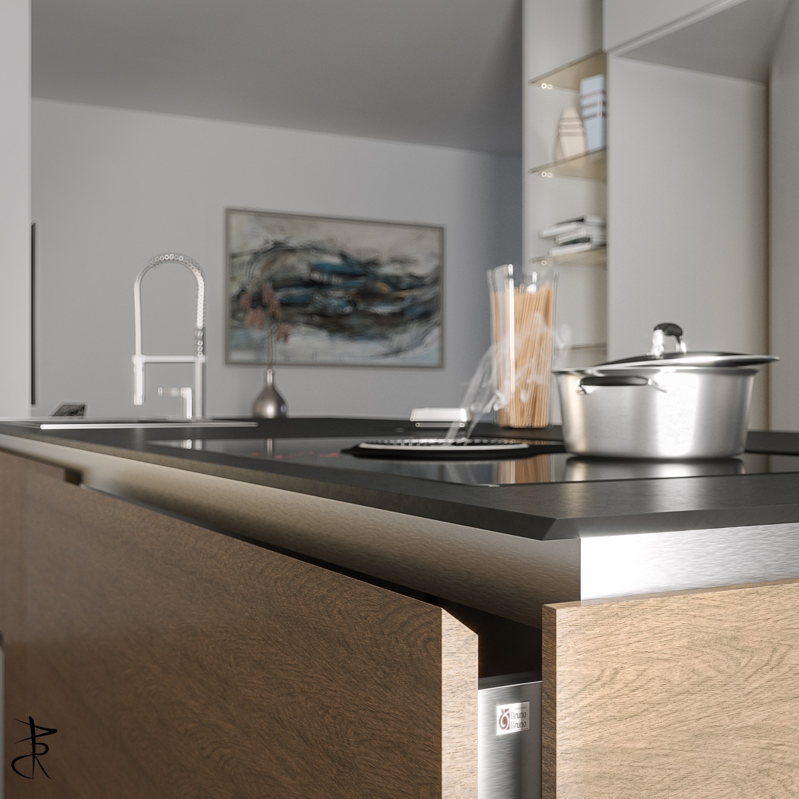 particolare di una cucina per un cliente privato. progettata, modellata e renderizzata con cinema 4d e corona render 4.