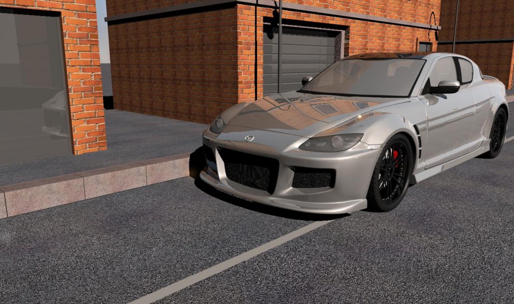 Mi sono cimentato nella progettazione della Mazda RX8 con kit estetico Mazdaspeed.Lo scenario di sfondo è stato fatto in 30min giusto per dare un senso all'immagine (e si vede :P)