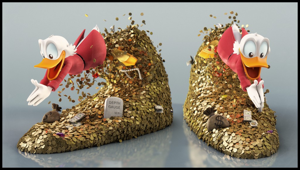 Questa è la mia versione 3D di Zio Paperone della Disney, in posa tuffo. Ho usato Cinema 4D e Photoshop. http://www.edercarfagnini.com/#!scrooge-mcduck/cvcg