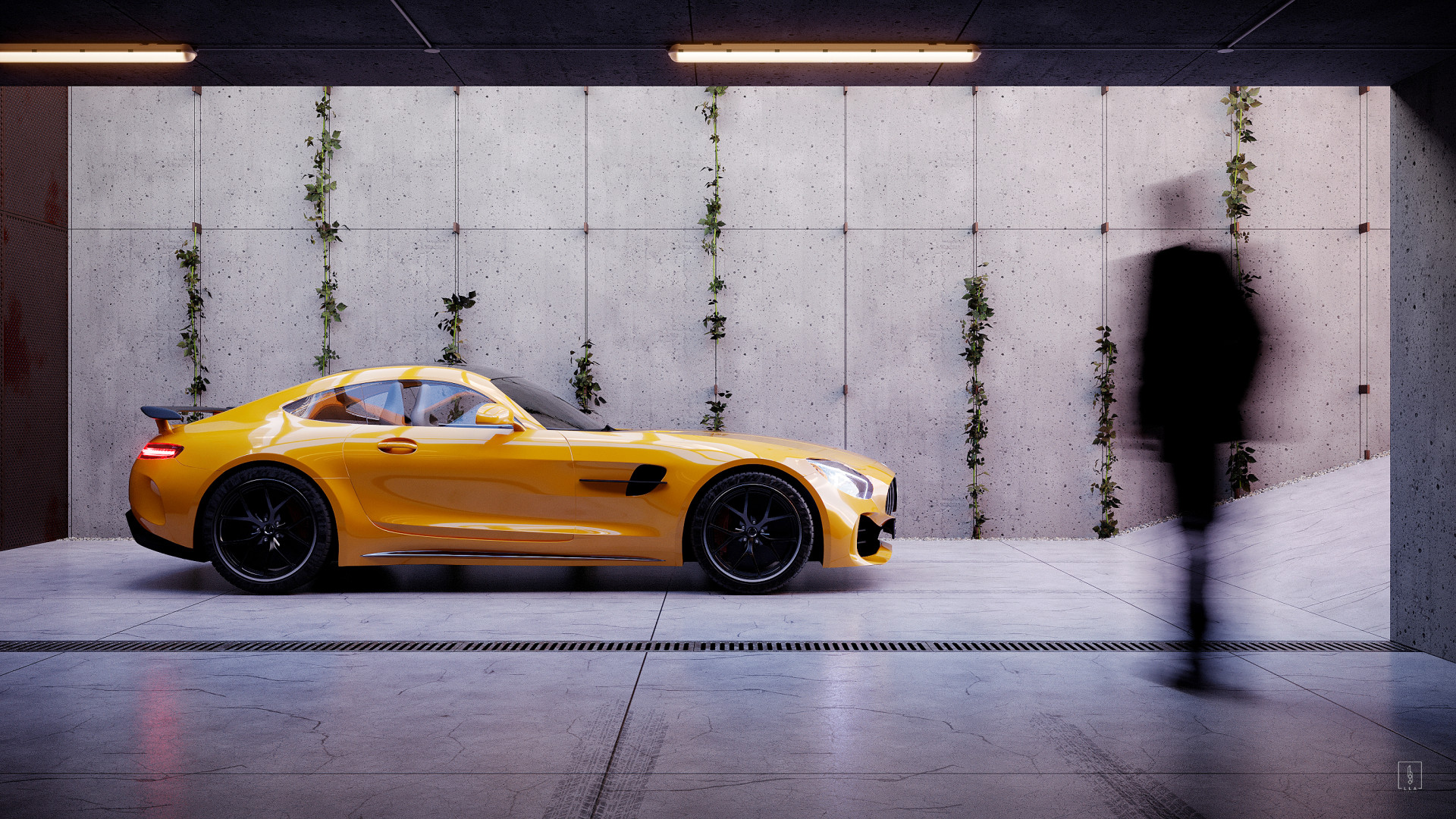 Un render artwork che lavora sull'uso dei contrasti negli scatti automotive.