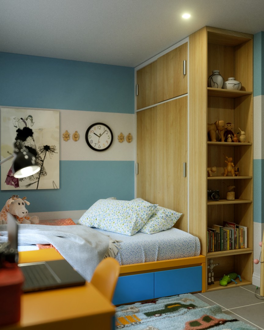 Test su luci e materiali di una cameretta per bambino. Illuminazione data da un'immagine HDR e qualche luce area interna. Programmi usati: Sketchup, Cinema4d, vray, marvelous designer, Photoshop.
