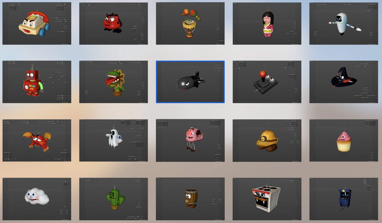 A group of 26 micro-rigged monsters ready for videogame animations. We used only joints and object movement for maximise the game compatibility export for Unity or UE.