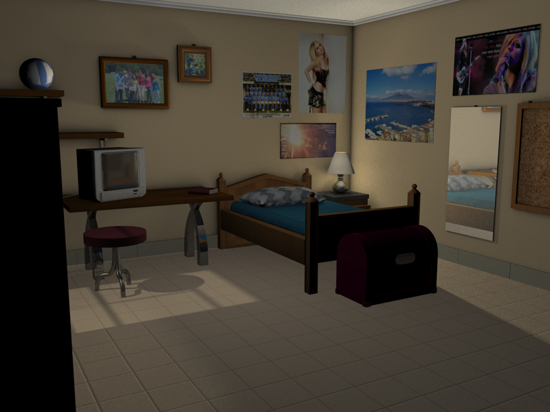 Salve utenza! Sto lavorando alla riproduzione della mia cameretta in C4D! Spero che vi piaccia. Ovviamente ogni consiglio è bene accetto comincio col postare l'ultimo rendering