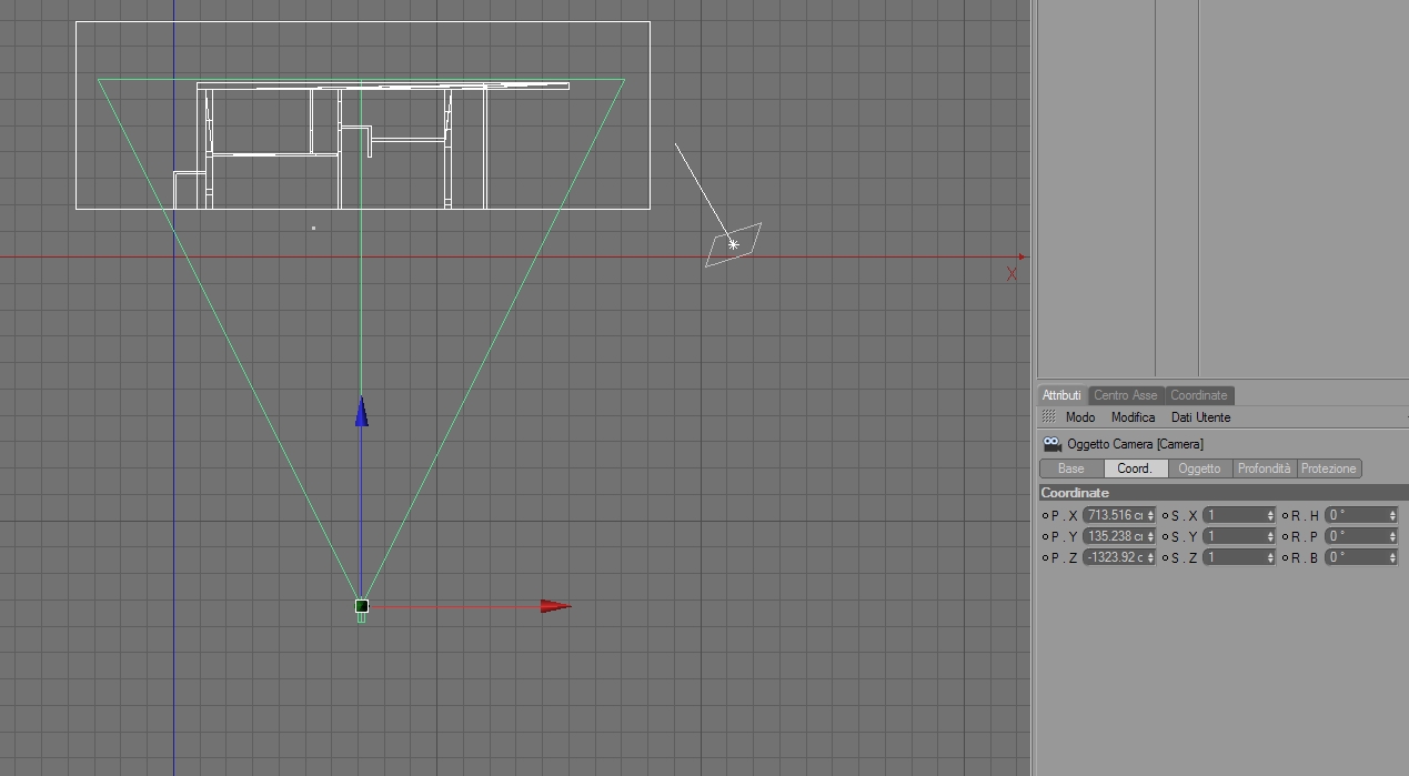 esattamente, l'oggetto camera in attributi - coordinate - angolo H=0°