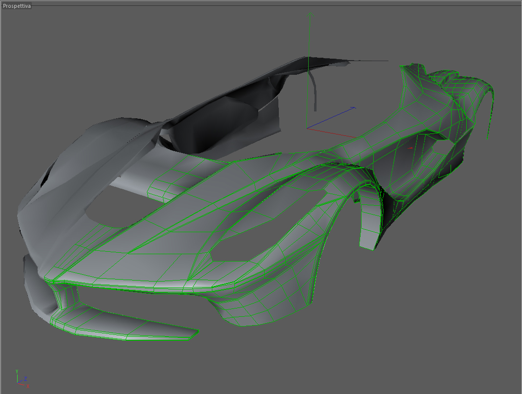 Non ho realizzato il cofano ed il resto della macchina in piu perzzi perche spero di poterlo tagliare a modellazione finita... spero!!!