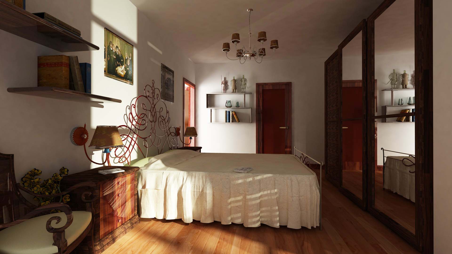 1 luce infinita (senza phisical sky) shadows attivo; diretta verso la portafinestra (infatti proietta luce sul pavimento) multipl. 1