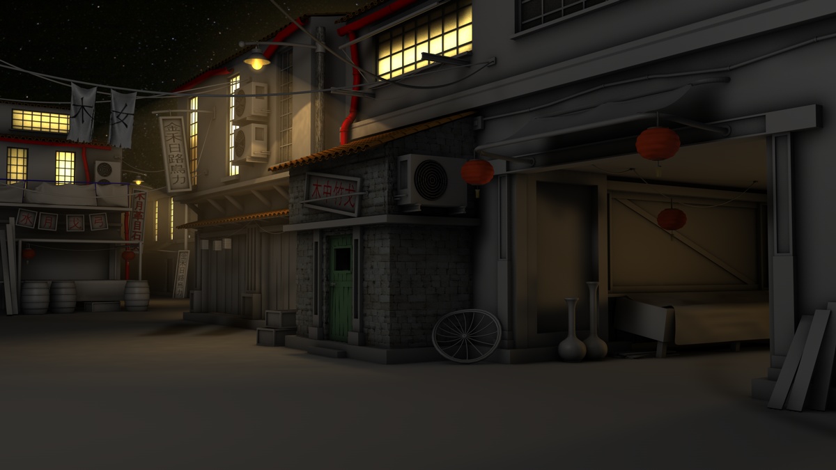 Girovagando sui forum dedicati son rimasto colpito da un lavoro ambientato in un sobborgo cinese: ho deciso di cimentarmi anche io in qualcosa del genere, convinto che il tipo di scena mi obbligava a cimentarmi sia in modellazione che in texturing in maniera (credo) abbastanza avanzata!