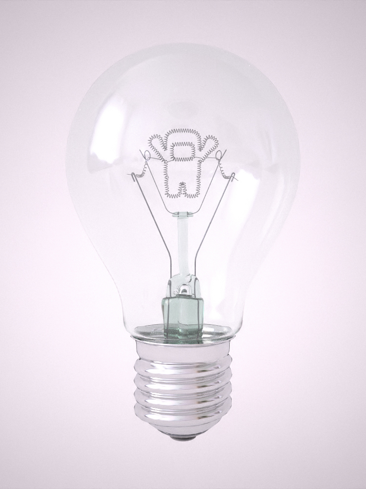 è una lampadina, ho cercato di creare la luminosità del filamento in tungsteno con una luce di tipo "area" assegnata all'oggetto che rappresenta la spirale del filamento.