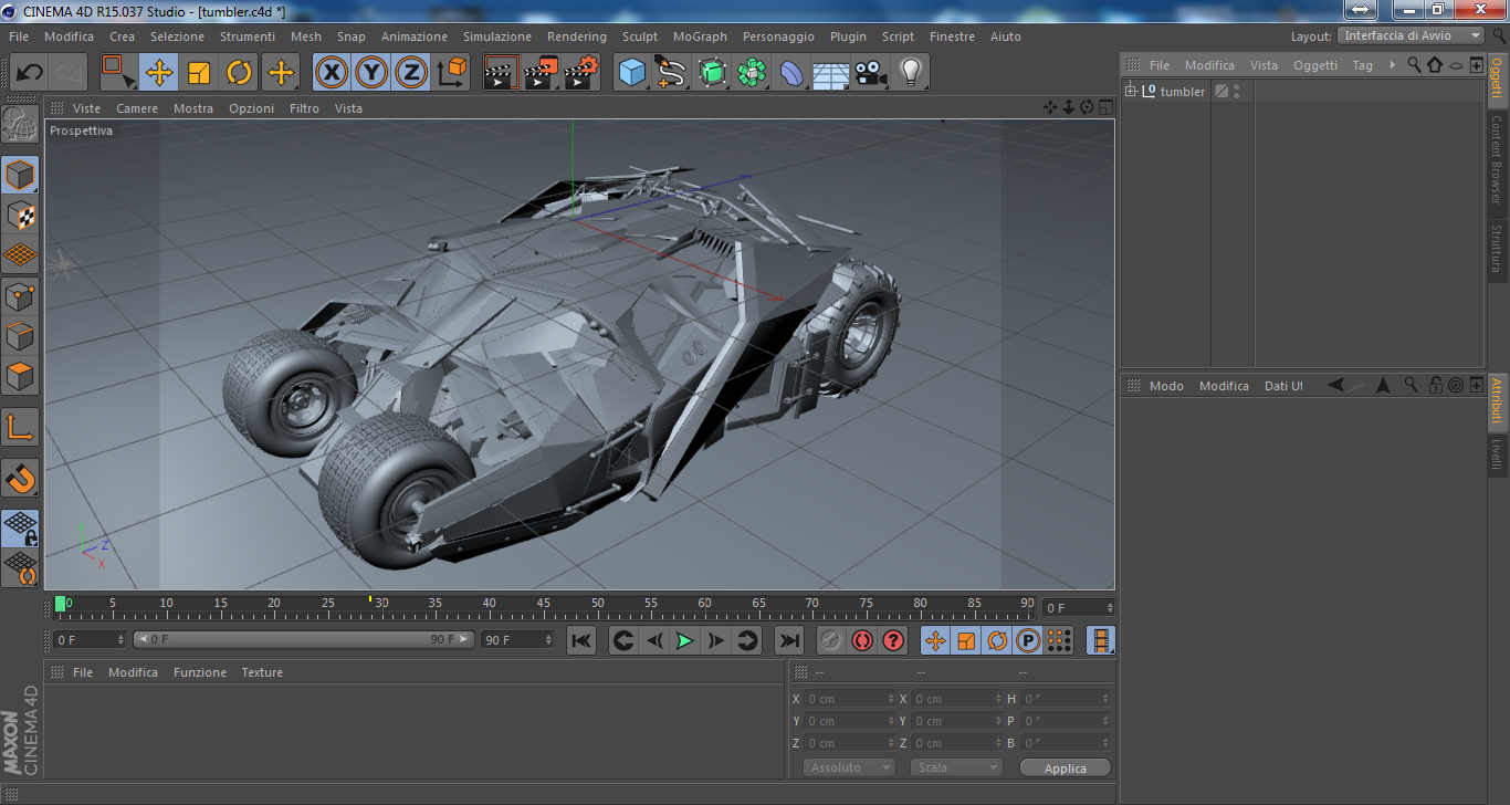 ps, non so se hai presente, il wip sul quale sto lavorando è quello che vedi in sezione Vray for C4d "Wip Strada degradata" e questa inviata è la scena, dove come vedi c' è un lampione dove dovrà sbattere la mia auto... auto che come vedi, sarà la mitica tumbler di batman, elaborata seguendo passo passo questo tutorial