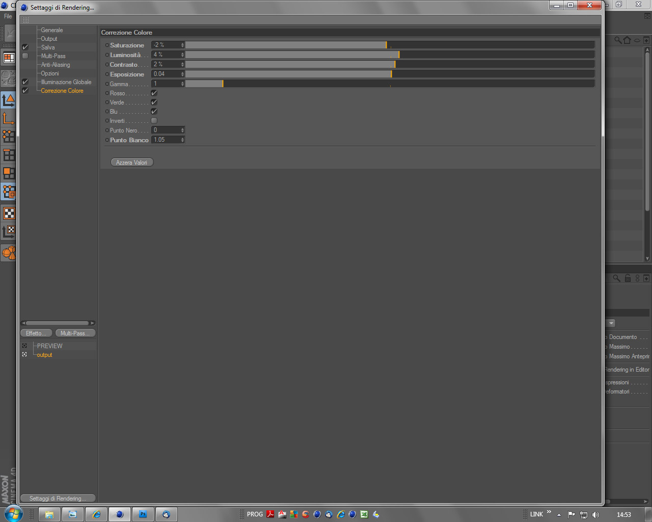 inserisco l'ultimo risultato ottenuto. Mi sembra tutto abbastanza soddisfacente salvo per il fatto che non riesco ad eliminare le chiazze scure su muro e cartongesso!!! Potete darmi qualche suggerimento? I parametri dell'illuminazione sono alti come potete vedere, ed il materiale del muro è uno di default di cinema.