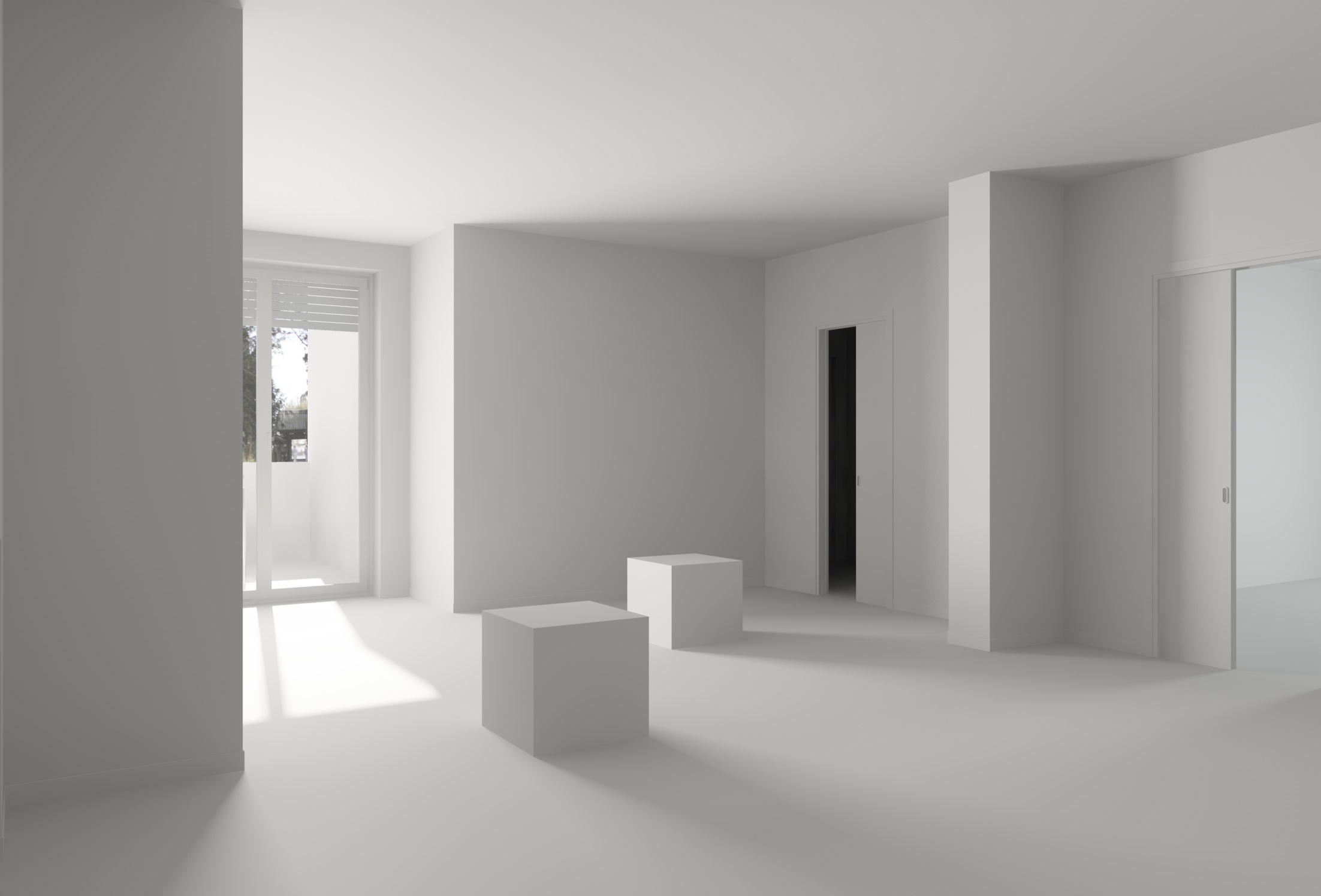 poi dato che hai aperto tute le porte, per creare più atmosfera mettile su tutte le finestre dell'appartamento, cambi il colore verso l'azzurrino e abbassi d'intensità.