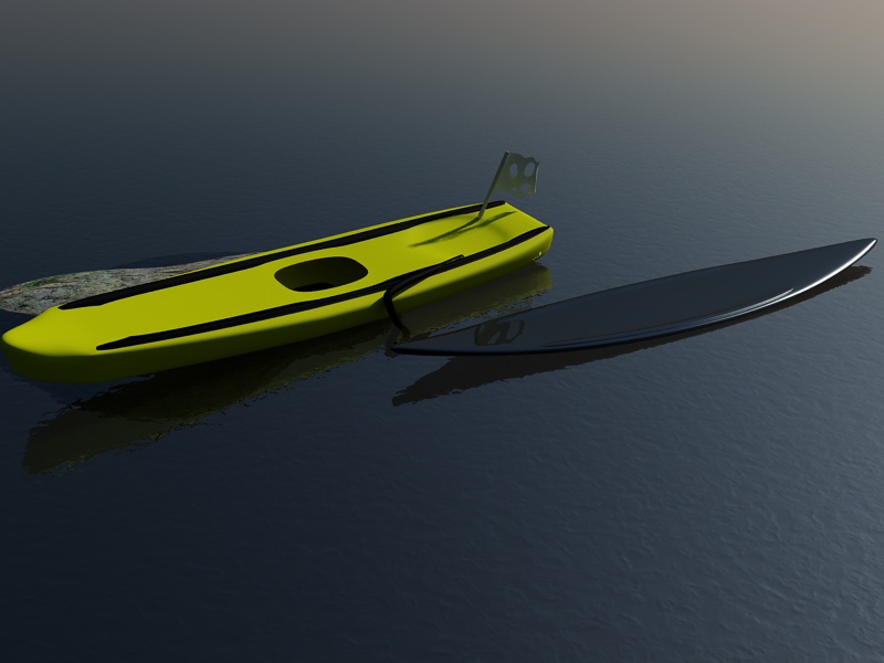 io aumenterei i particolari della canoa (tipo intorno al foro) e ridurrei la riflessione del surf.