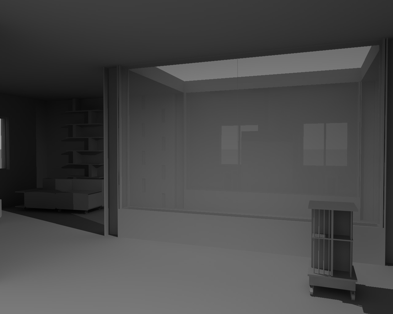 1) inserisci al centro della stanza una luce volumetrica non visibile, che non generi ombre. Settala a non piu' del 10 %.