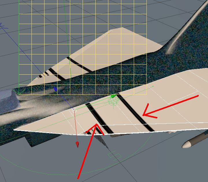se applico la stessa bump che ho applicato sopra alla cabina , ma questa volta alle ali , che è un corpo a parte mi deforma il bump cioè non esce l immagine come è ,ma esce modificata troppo deformata non si capisce niente , so che bisogna ridimensionare la foto per adattarla am qui non succede proprio niente , questo mi fa pensare che c'è qualcosa che non va...nella foto vedete che invece di uscire i cerchi escono queste strane linee che indico..