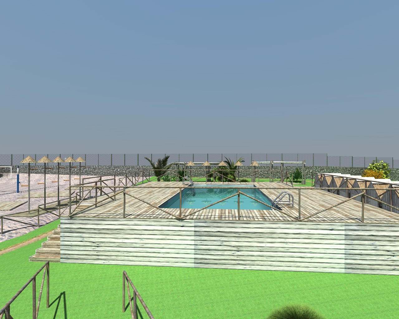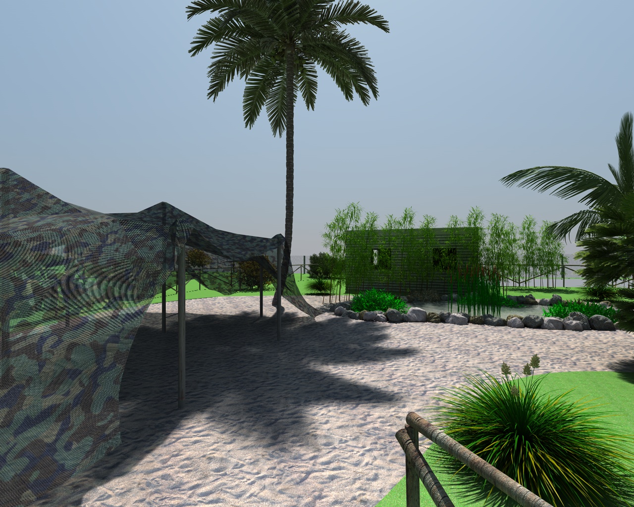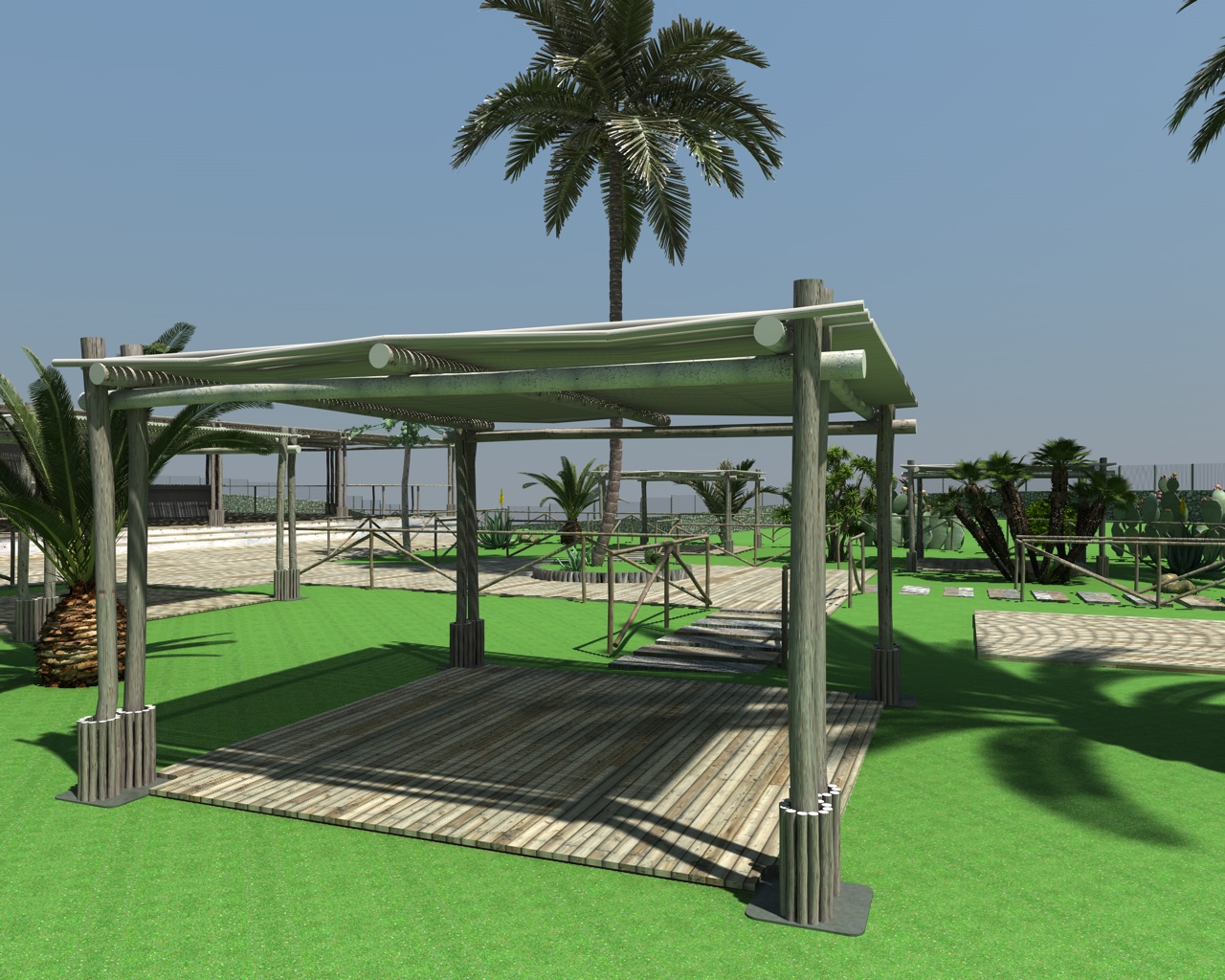 il modello è bello, ma dovresti texturizzare un po meglio....come vedi il risultato è piatto. i passamano in legno, sono lisci...l' erba è liscia , le piante non hanno trama...
