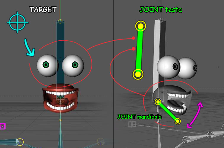 - Se la bocca è realizzata a parte ( come faccio ogni tanto io ) va anche " riggata " a parte, e le relative Joint vanno inserite sempre dentro quelle della testa ( ed anche la mesh stessa ).