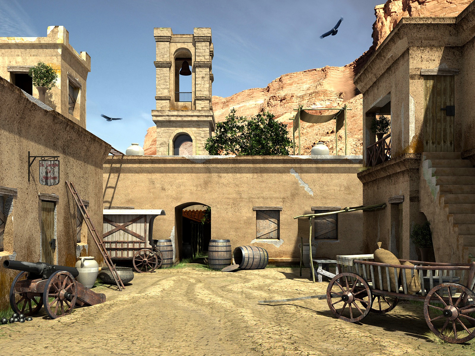 prova a fotografare il carretto, il cannone e l'insegna della locanda. Mi sembrano fatti bene e sarebbe carino vederli piu da vicino :) , anche considerando il livello di dettaglio che con una vista cosi generale tende a perdersi.